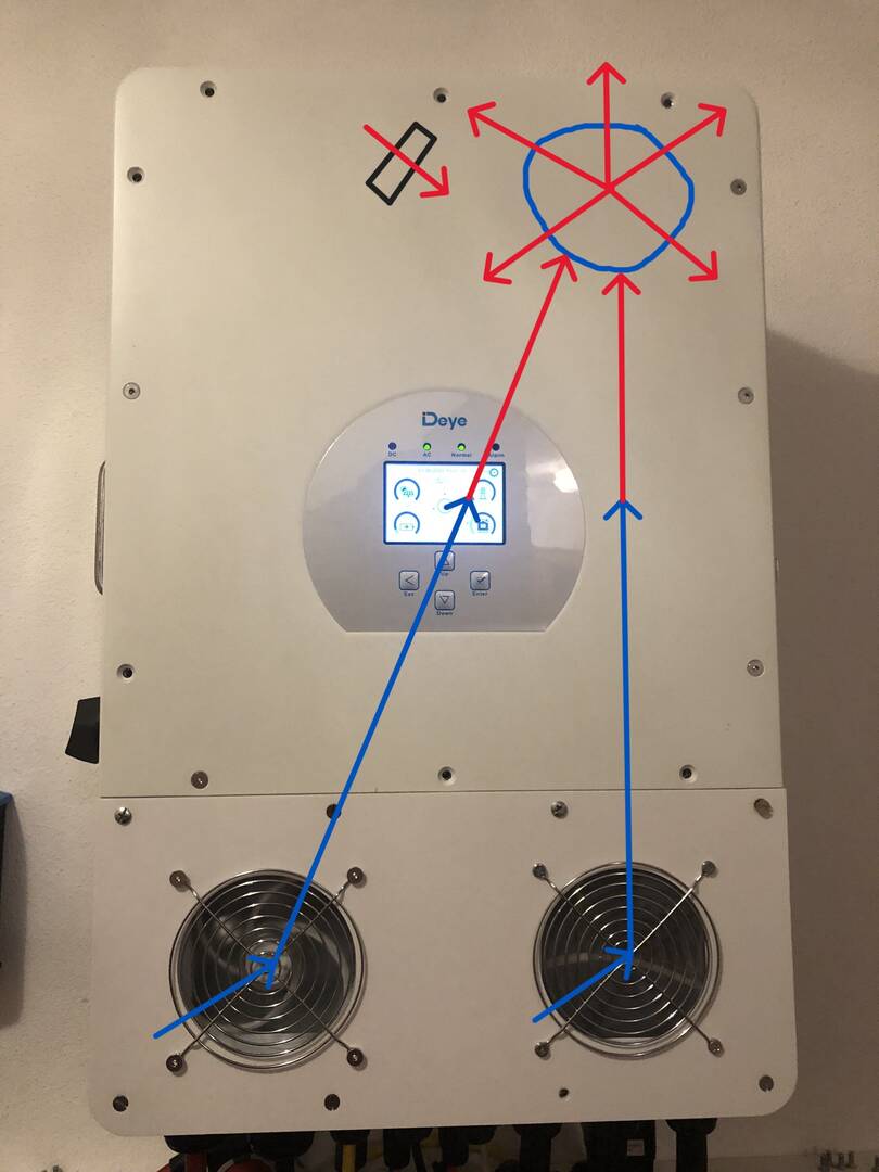 @petpetson Deine Lösung ist wohl die effektivere, aber ich glaube, Deye hat diese Lösung nicht gewählt, wegen der Staubproblematik. Ich überlege auch diese gegen eine Kunststoffplatte mit zwei Lüfter zu wechseln, überlege noch wegen Filtern.