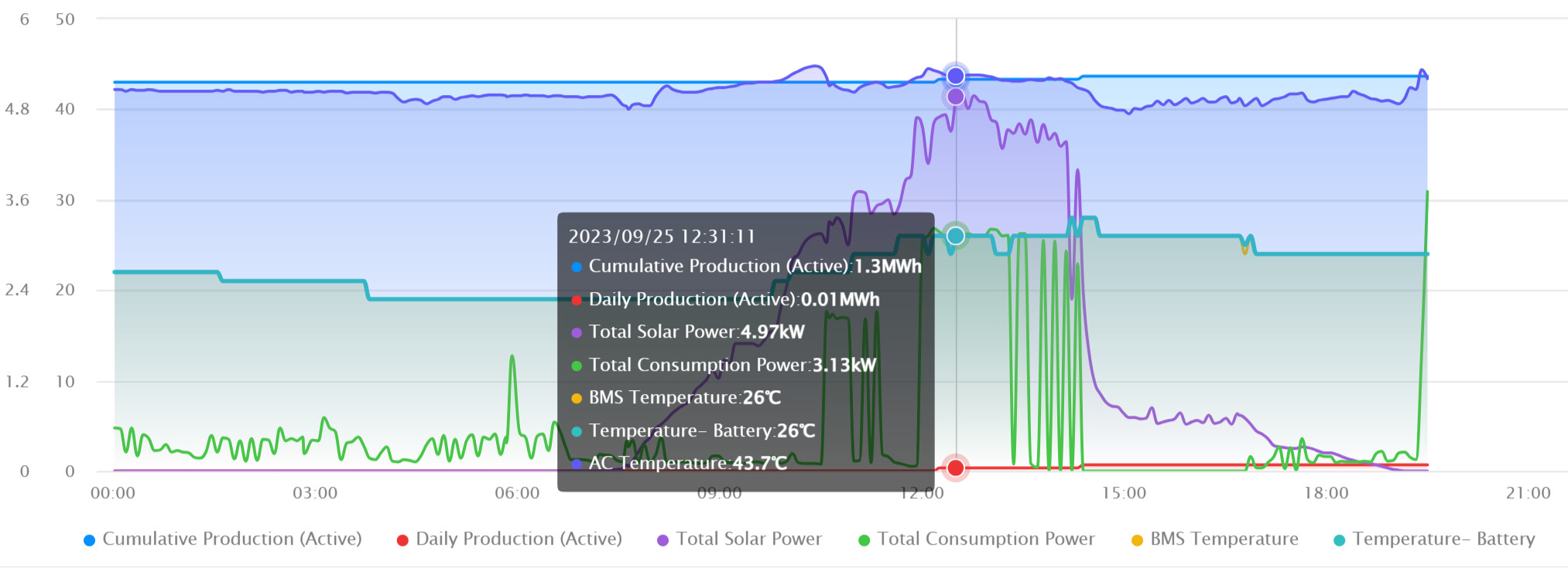 Kann ich gerne machen, Aktueller Tageverlauf von heute Max 5Kw Solar und etwas über 3Kw Dauer verbrauch über 3 Stunden zwecks Boiler aufheizen und die restlichen 2Kw gehen in den Akku.