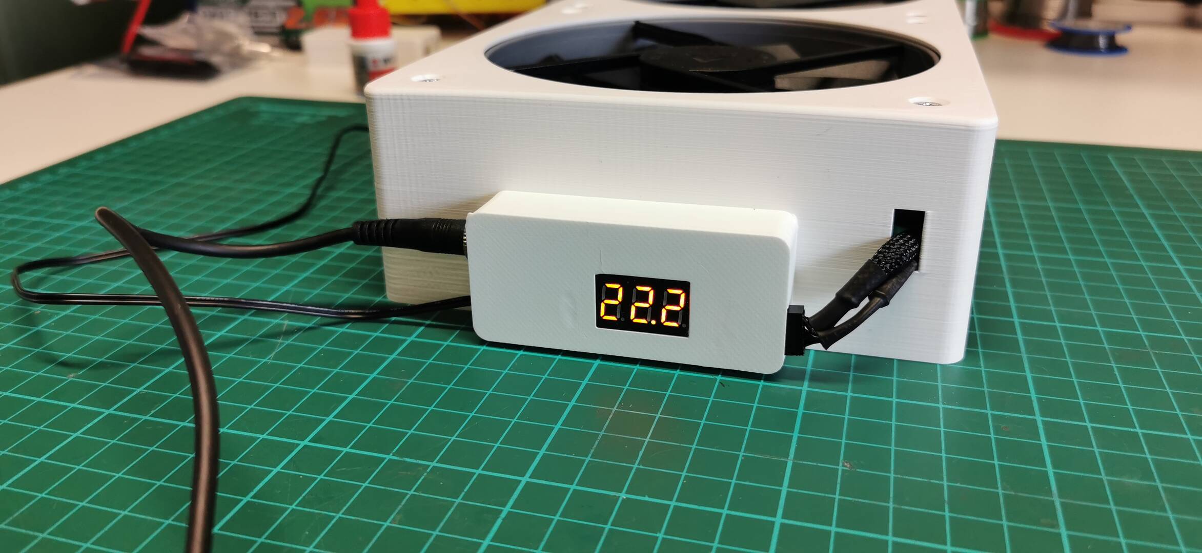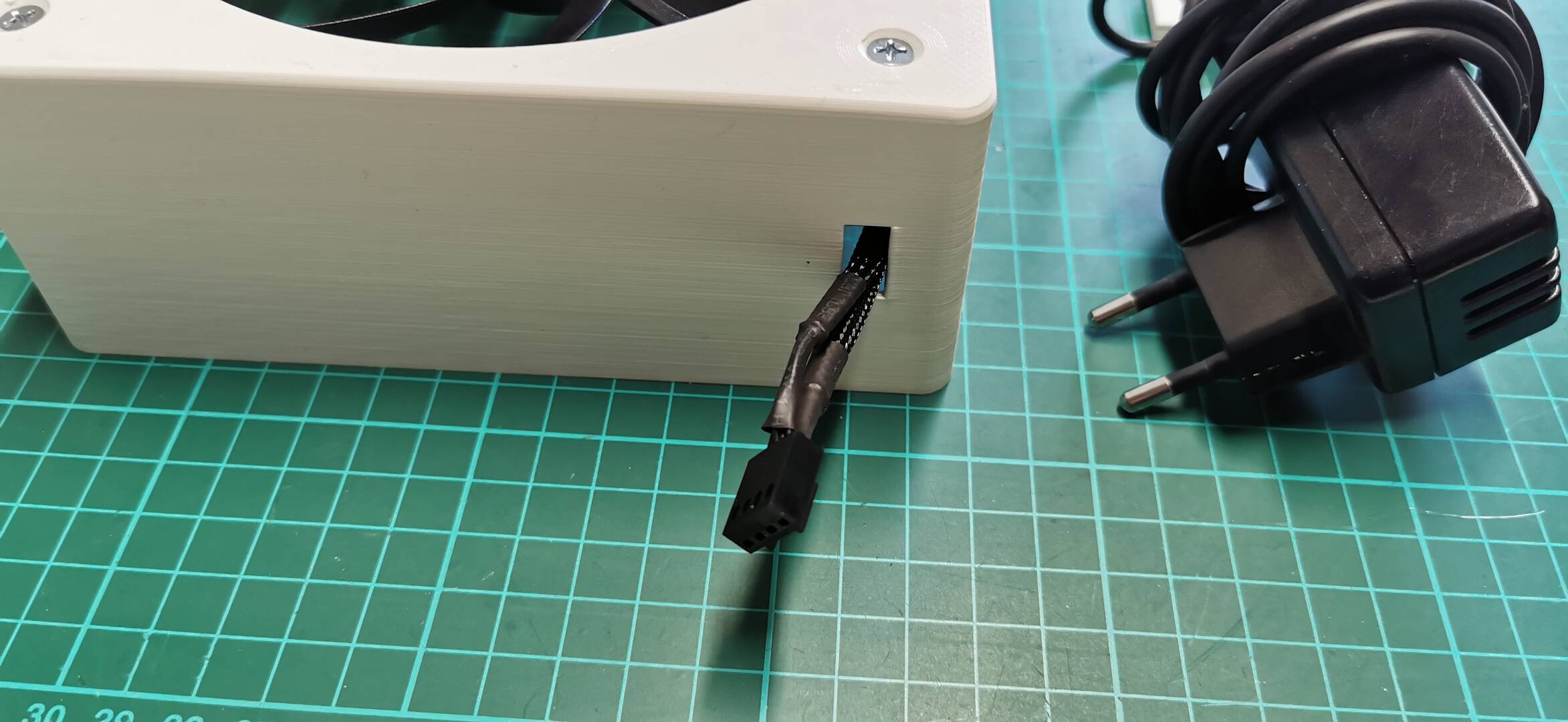 Betreiben werden die Kühlungen mit einem übrig geblieben FritzBox Netzteil, an der Steuerung habe ich einfach die Passende Buchse eingebaut, so das ich den Netzteil Stecker nicht abschneiden musste.