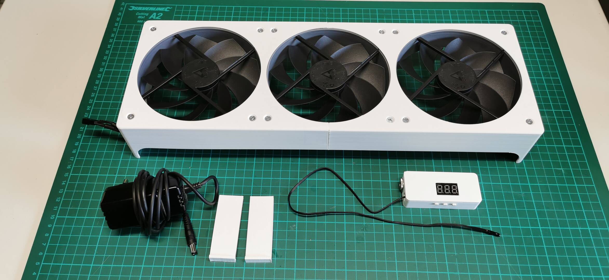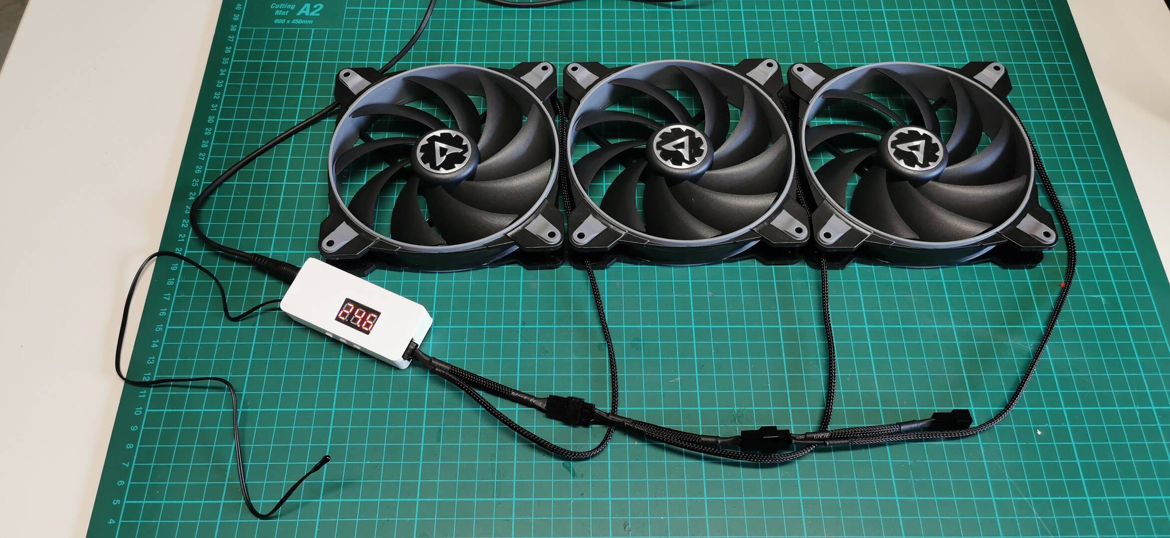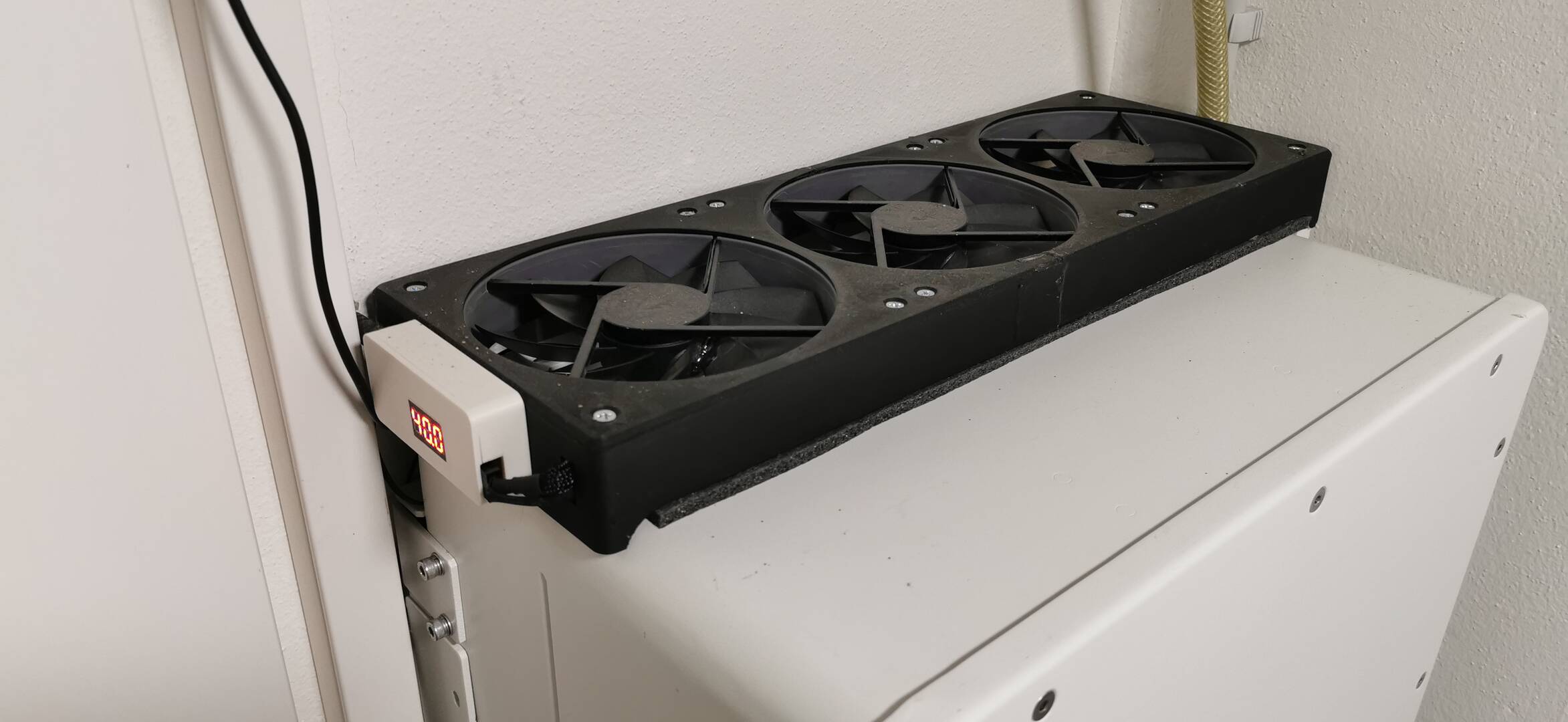 Dann habe ich noch eine Absaugung aus drei 140er Lüfter gebaut mit der gleichen Steuerung:
