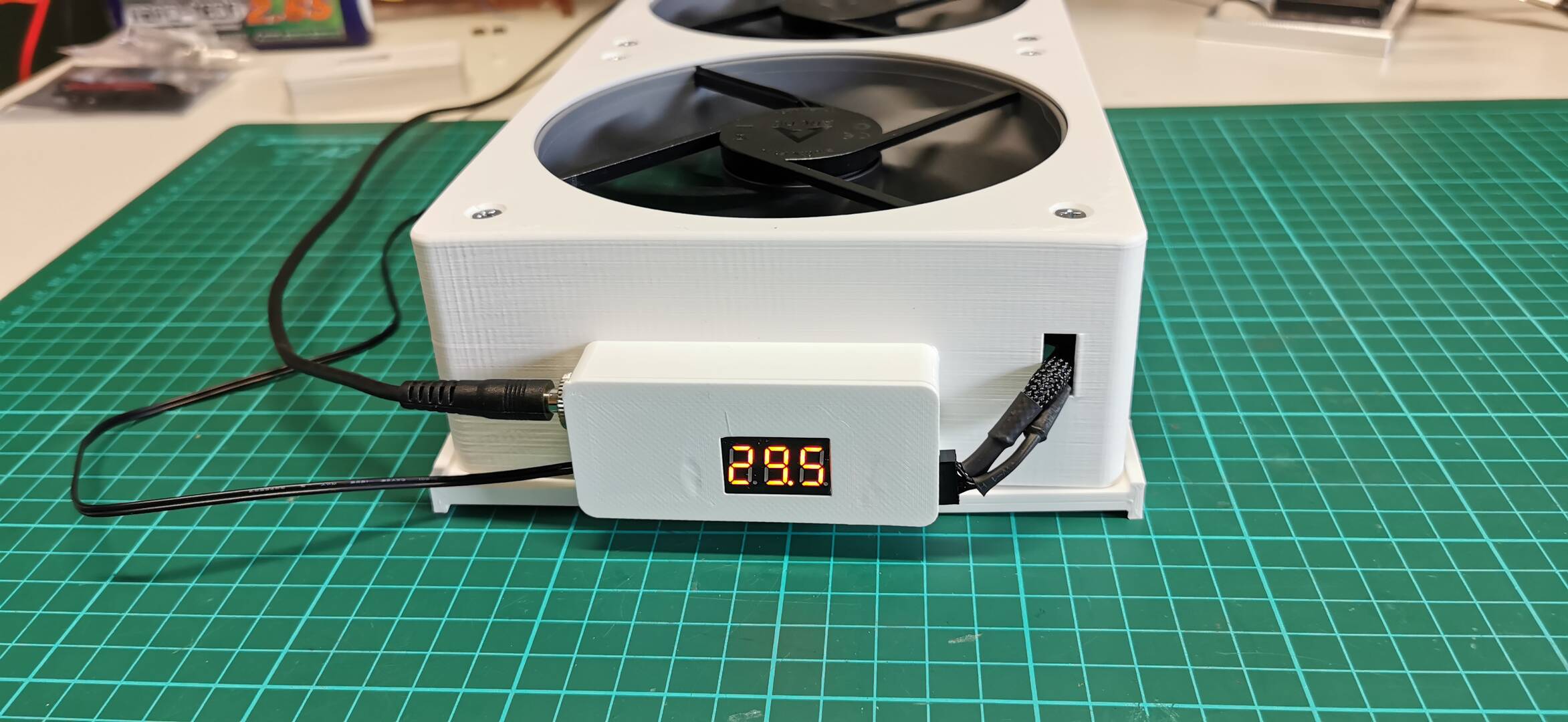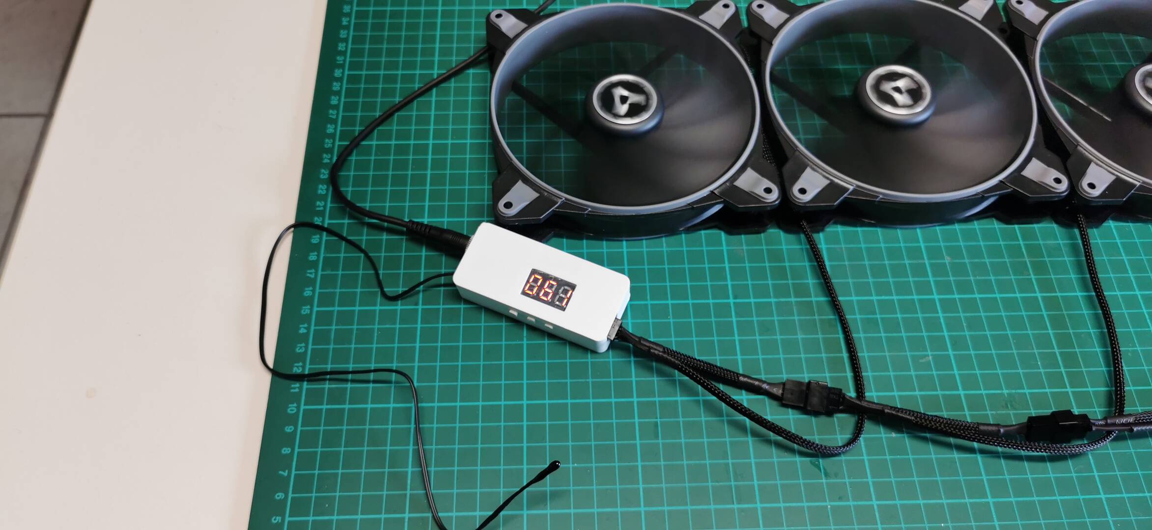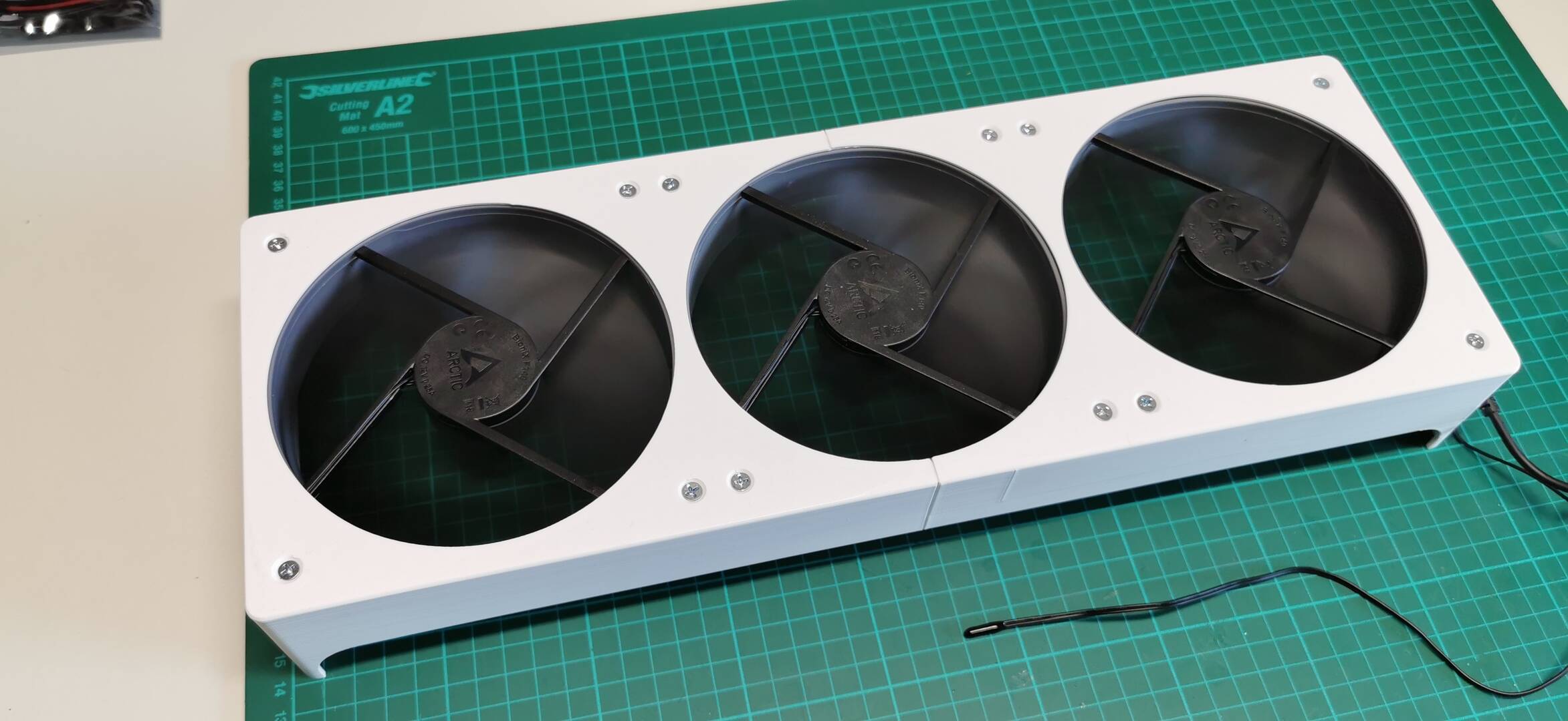 Dann habe ich noch eine Absaugung aus drei 140er Lüfter gebaut mit der gleichen Steuerung: