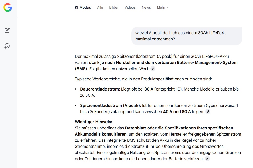 Mal ausrechnen, ob mein 384Wh 30Ah LiFePo4 am BKW überhaupt von den Daten her erlaubt ist: