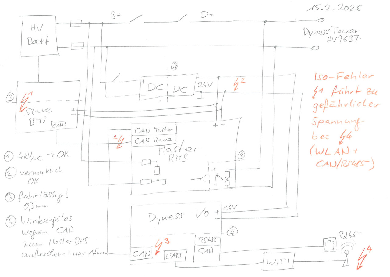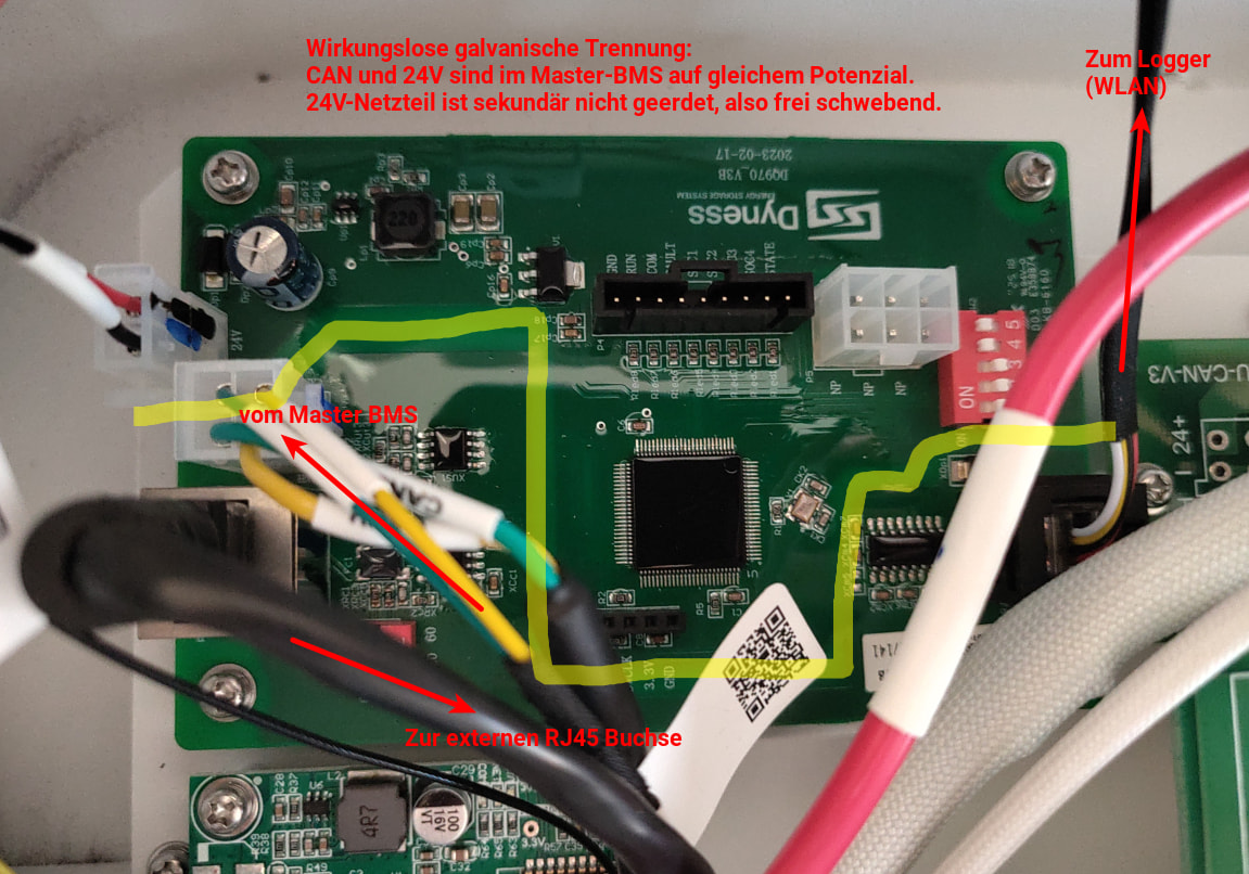 Besonder gemein ist, das auf der I/O Platine eine vermeintliche Isolation vorhanden ist - auch wenn sie mit nur 1,5mm sowieso viel zu gering ist. Sie wird durch das Master-BMS komplett gebrückt und ist völlig wirkungslos.