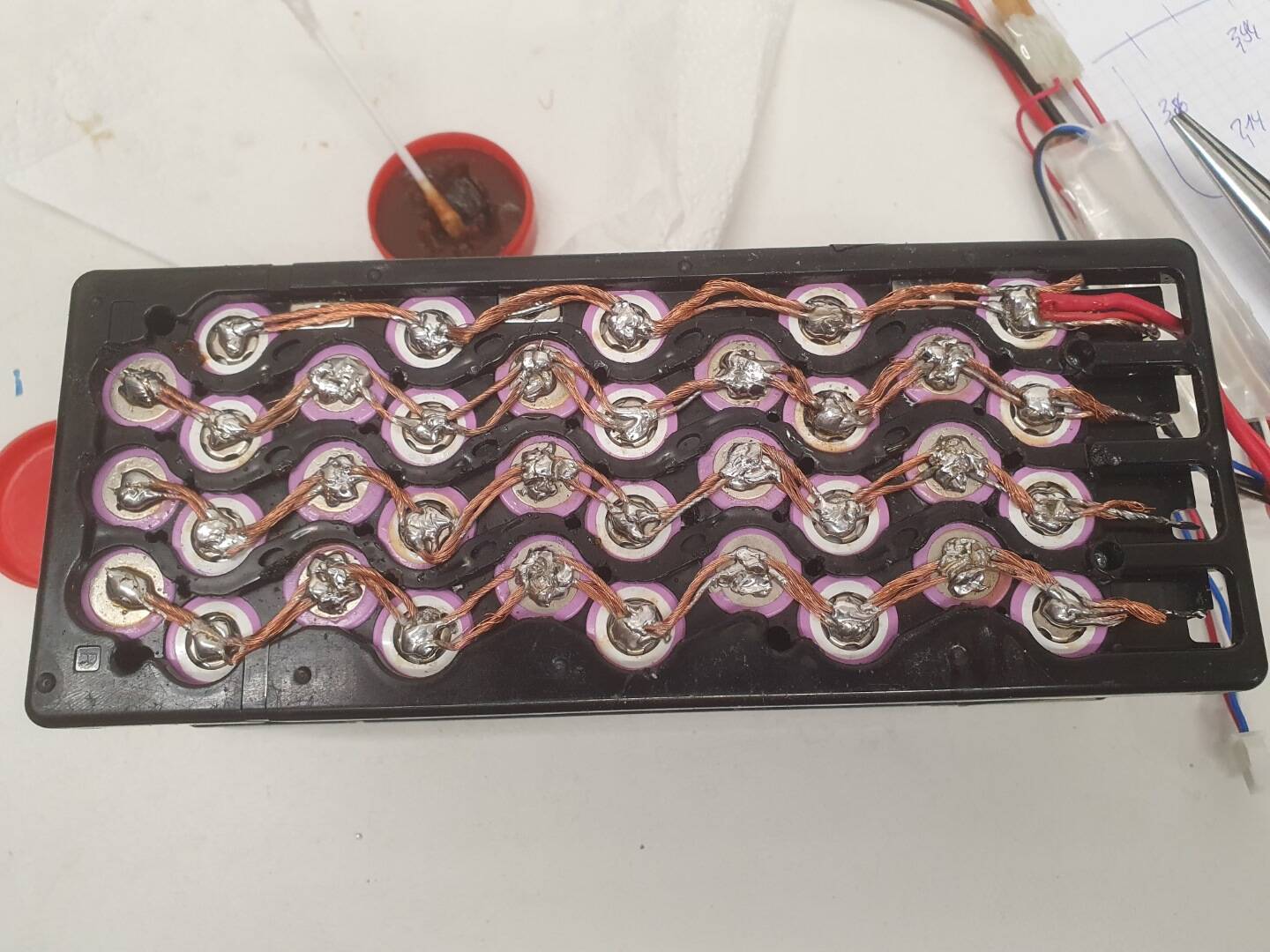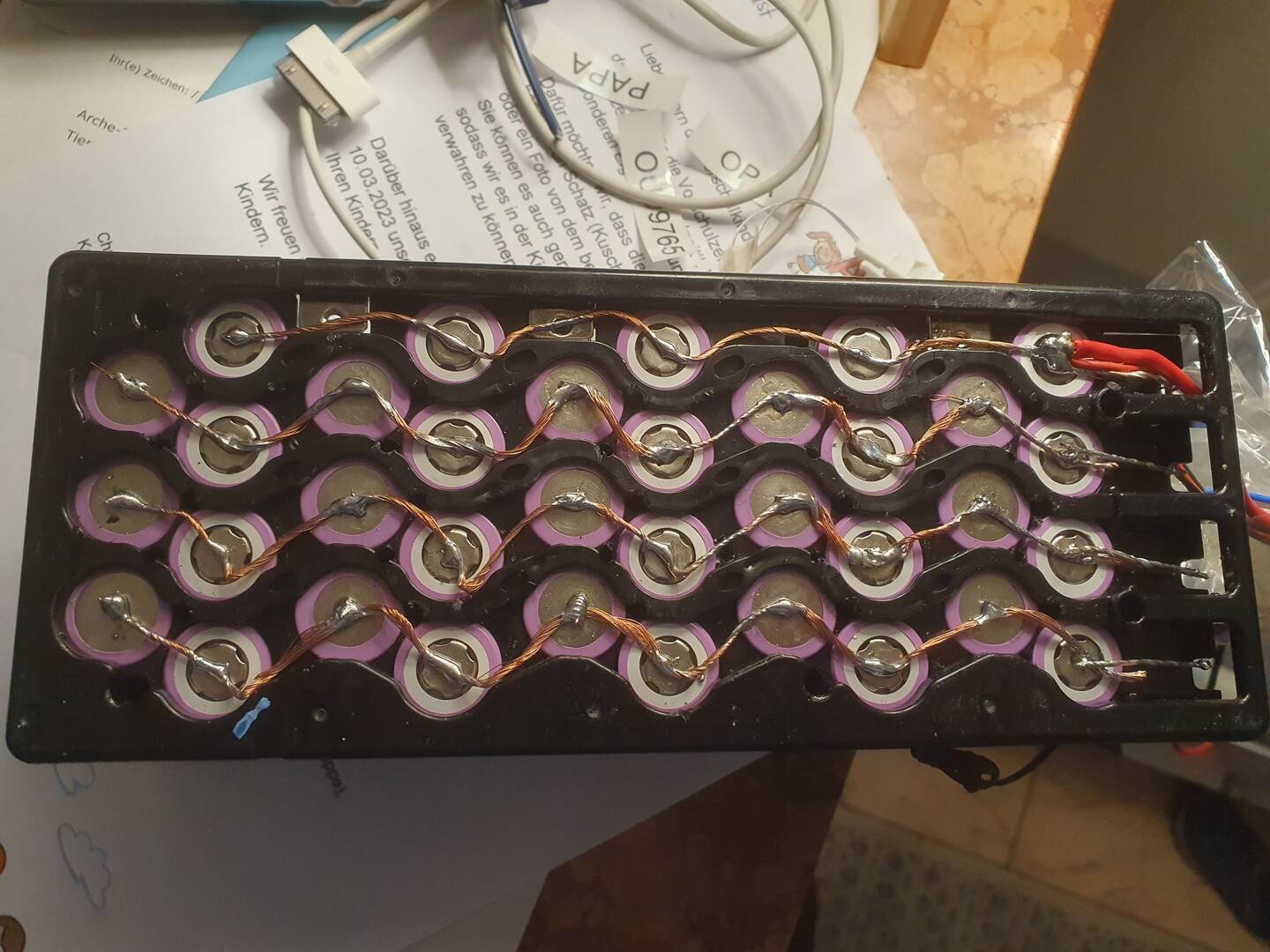 Die Zellen-Anordnung, bei der die Leiterstreifen sinusförmig über die Zellen hinweglaufen, ist die werksseitige Anordnung des Pedelec-Herstellers. Der Themenersteller hat sich das also nicht selbst so ausgedacht, sondern es einfach nach dem Zellentausch wieder übernommen, wie es war.