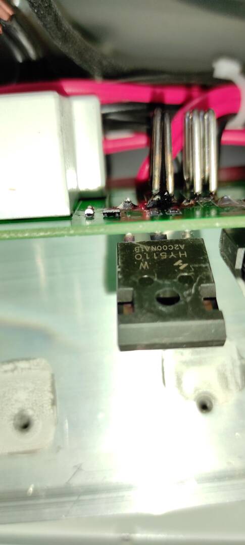 @kojote@linuxdep habe eben mal die Kontakte nachgelötet. Jetzt lädt das Gerät wieder aber mit 42A. Der Strom lässt sich nicht mehr begrenzen. Kann das an den defekten Transistoren liegen? Regeln die den Strom?
