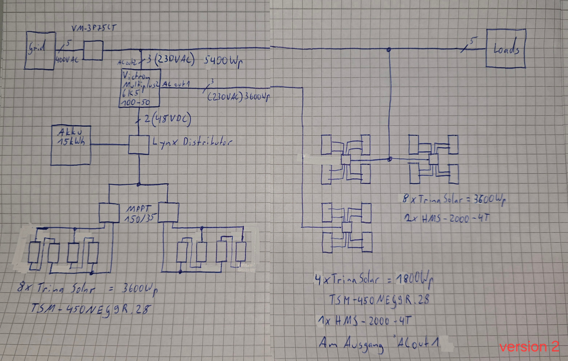 Nur um Missverständnissen vorzubeugen: Zu Beginn hast Du von HMT-2000-4T geschrieben, das sind 3-phasige WR, ich hatte vom HMS-2000-4T geschrieben (1-phasig, für den AC-Out der kritischen Lasten), jetzt schreibst Du in der Zeichnung nur noch von HMS also 1-phasigen Wechselrichtern - auch am AC-IN. Ist das so gewollt?