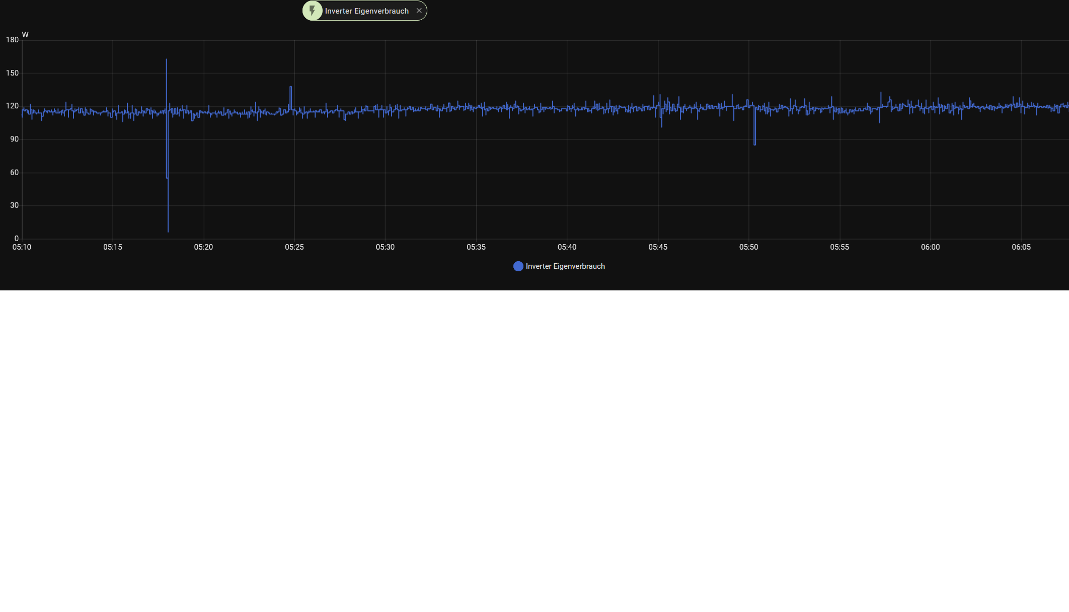Was meinst du mit „Eigenverbrauch”? Den Eigenverbrauch des Wechselrichters oder den Netzbezug? Wenn der WR etwas zu tun hat, dann verbraucht er gerne etwas mehr als 100 Watt.