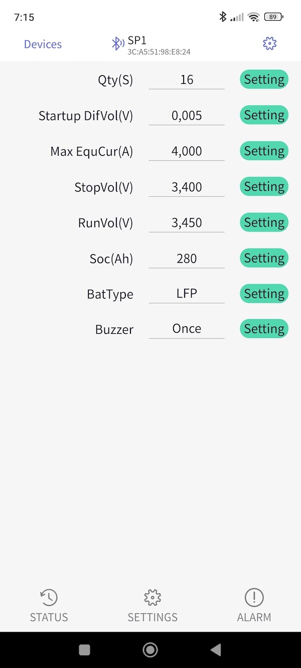 Ich ging davon aus, dass ich mit den Einstellungen "RunVolt(V)", "StopVolt(V)" und "Startup DifVolt(V)" steuern kann, wann "gebalanced" wird. Und zwar derart, dass er aktiv wird, wenn alle Einzelspannungen zwischen den Werten für "RunVolt(V)" und "StopVolt(V)" liegen und gleichzeitig die Spannungsdifferenz größer dem Wert für "Startup DifVolt(V)" liegt.