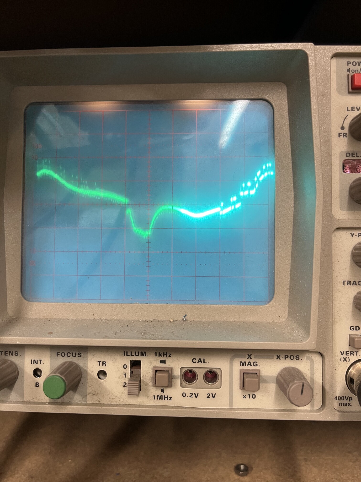 Mit Datenverkehr. Der Helligkeitsunterschied liegt an der Belichtungszeit des Smartphones. Dunkel ist Nachleuchten Hier sieht man, dass die Spannungssprünge etwa den Pegel der Daten haben. Sie könnten die Ursache für die Empfindlichkeit sein: