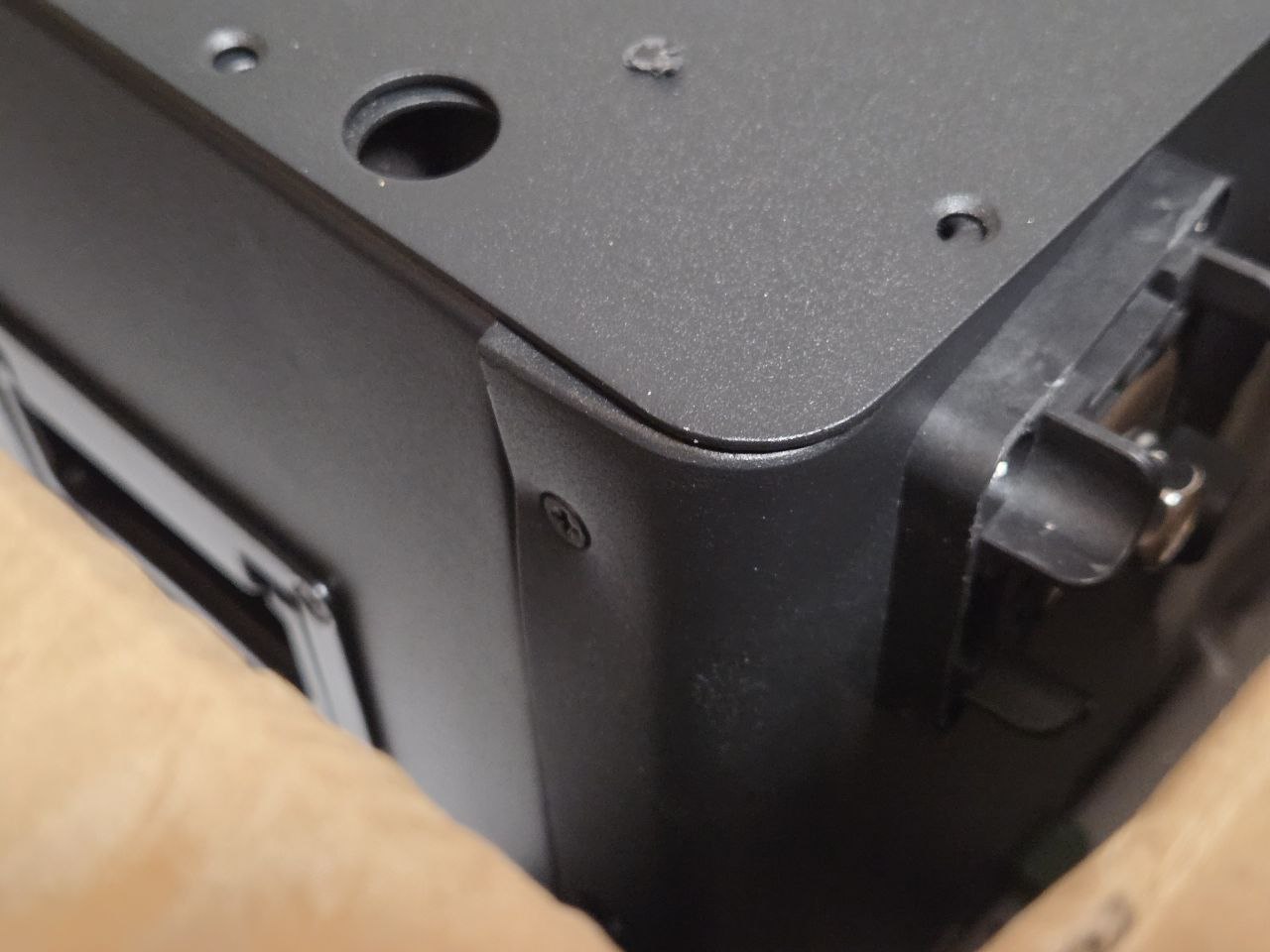 Die ganzen Probleme sind auch Hausgemacht von EEL. Der Schaufstoff an der Front ist nur wenige mm dicker als die herrausstehenden Teile. Viel zu wenig für eine große schwere Box.