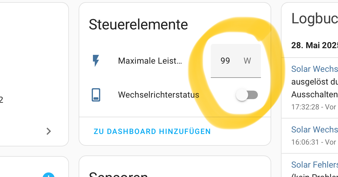 Ich möchte meinen EZ1 lokal mit HomeAssistent betreiben und Zugriff auf die Steuerelemente im HA haben, also, die Ausgangsleistung beeinflussen können.