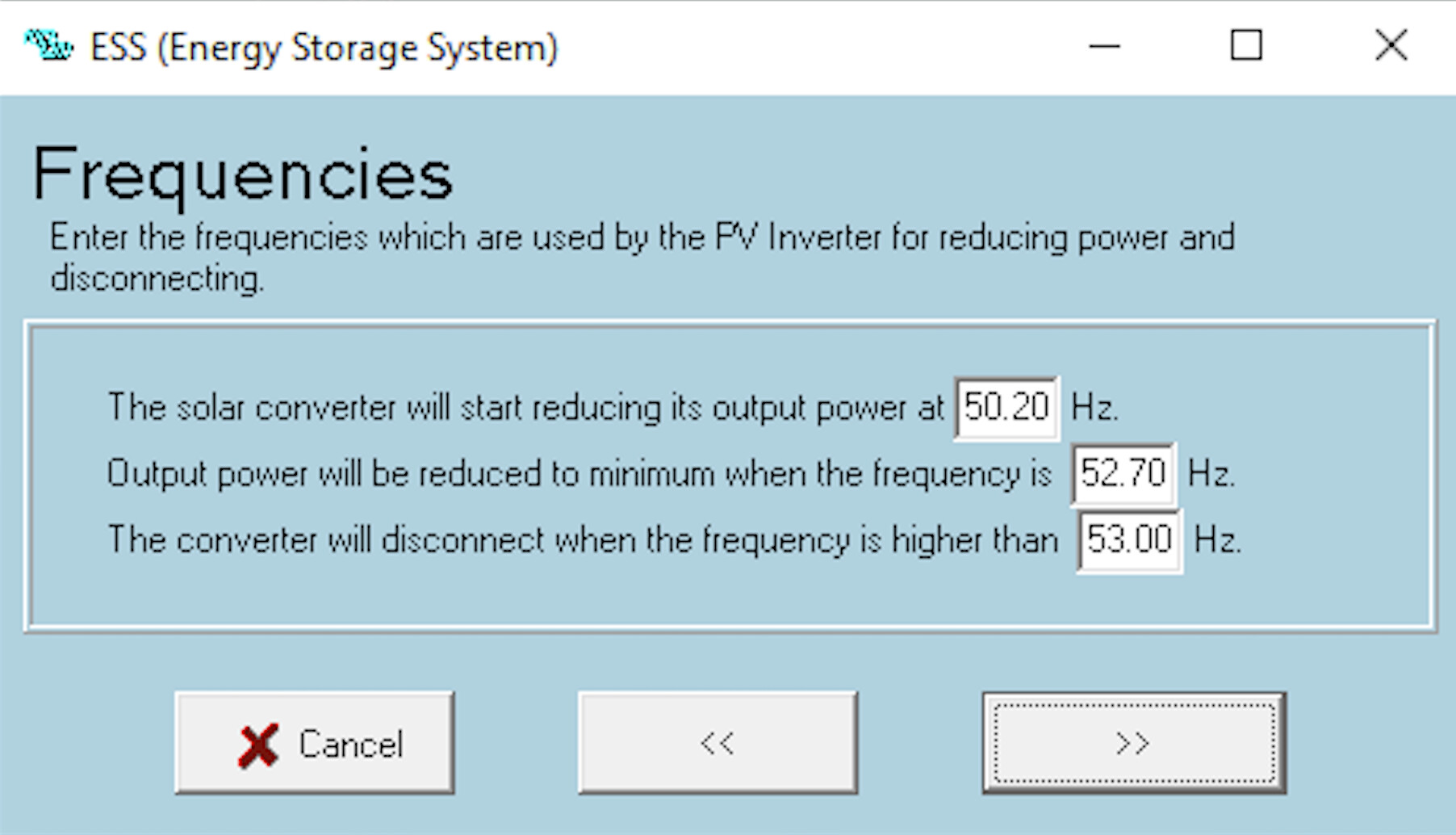 Wenn ich im Victron nun eingeben Wechselrichter an AC-out1, dann erhalte ich ein Auswahlenster für die Frequenzregelung.