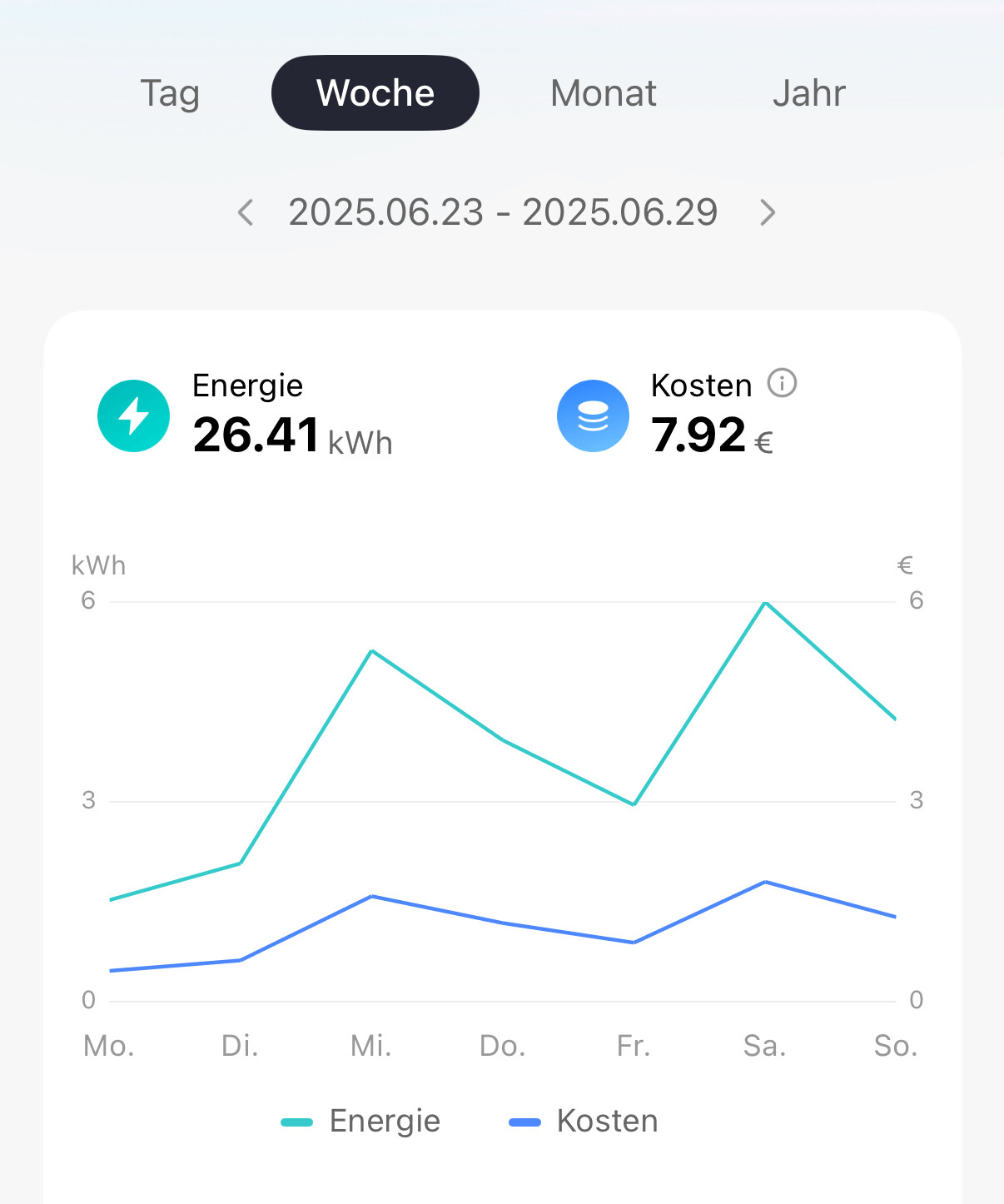 Was halt nerviger ist - ist wie sie regelt. Teils passiert gar nichts wenn man die Temperatur ändert, dann wieder ein Grad ändern und sie geht auf Vollgas (welches im jeweiligen Lüfter Modus freigegeben ist). Die Steuerung ist absolut daneben. Daher ist es nicht einfach per HA zu versuchen den Überschüssstrom des Balkonkraftwerks zu verbraten. Mehr wie 400w bekommt man nicht easy los - ohne gleich aus Versehen mal auf 1200w zu regeln. Weil ob sie bei 10% Lüfter etwa 200w nimmt oder 600w kann man ganz einfach nicht vorhersagen. Ab 20% sind dann max 800w drinnen, und ab 40% kann sie auf 1200w laufen - ABER es ist nicht wirklich logisch was pssiert man muss also dynamisch regeln wofür sich die Regeln bei Home Assistant nicht eignen (da schreibt man dann 30-40 Regeln um es irgendwie zu regeln oder lässt es sein und verbraucht halt 200-600w nach gut Glück). Die hat irgendwelche Schwellen und anhand der sind dann breite Spannen möglich. Sprich du schaltest runter von 25-23° und keine Änderung. Bei 22° beschließt sie Vollgas - und wenn du dann erhöhst geht sie erst bei 26° wieder retour in halbgas beim Kompressor.