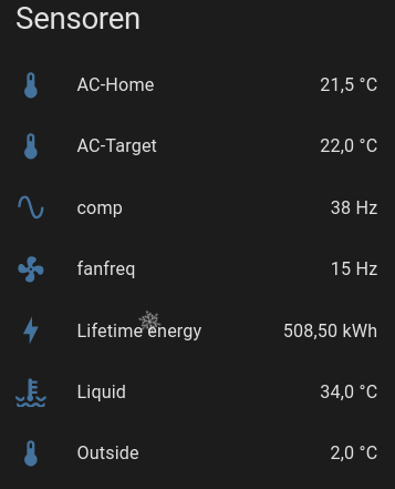 Weiter interessiert mich, was man alles auswerten kann. Man sieht die ungefähr verbrauchte kwh leistung, auch die temperaturen sind in home assistant grafisch schön auszuwerten. Kann ich denn sehen, wie der cop faktor ist ? Ich hab mir überlegt auszuwerten, was an kwh mit welcher aussentemperatur (gleichbleibende innentemperatur vorausgesetzt) benötigt wird. Man könnte so in home assistant ne ungefähre cop berechnung (zurückliegend) machen. Bin ich da auf dem holzweg, gibt es einen denkfehler ? Gibt es schon was, dass der cop faktor pi mal daumen langzeit grafisch dargestellt wird ?
