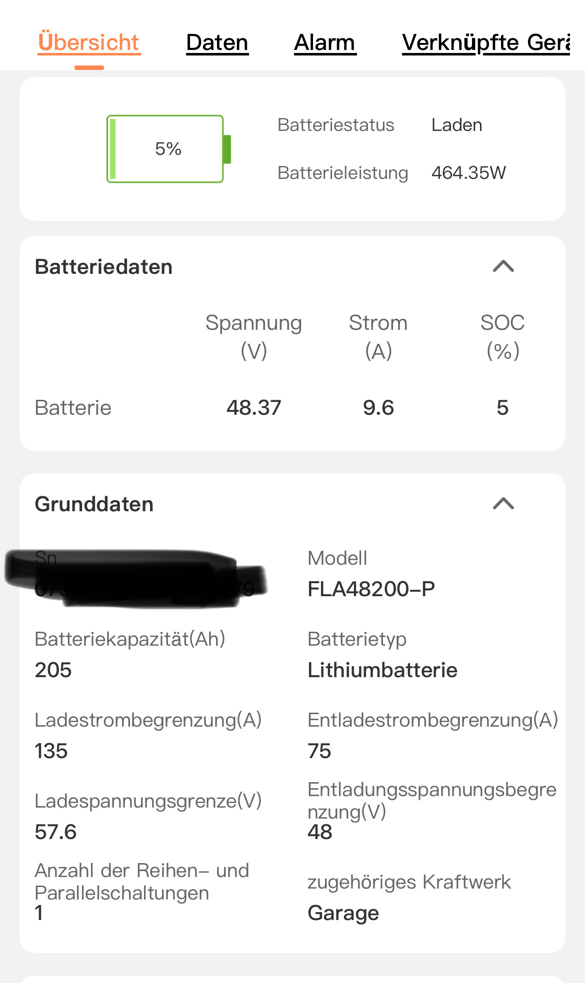 Jetzt zu meinem Problem… Wie kann der Speicher bei 46.07V bei 63% SOC sein wenn die Entladungsspannungsgrenze laut Speicher bei 48V liegt?? Und ich kann noch weiter entladen
