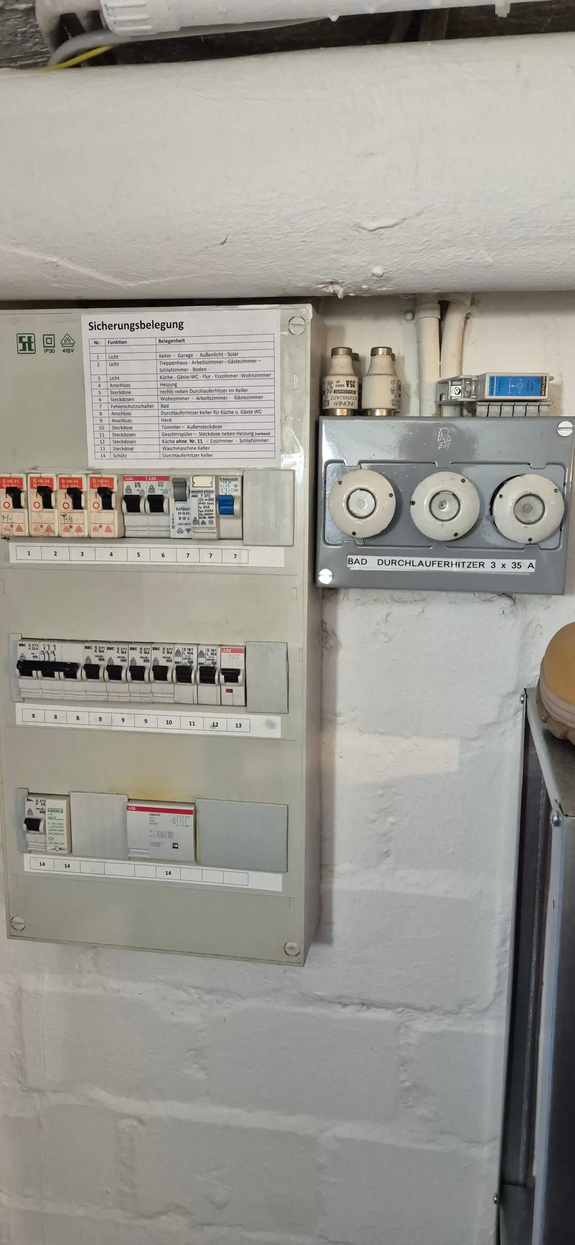 Aber wo ich die roten Schutzleiter sehe: Die Elektroinstallation ist vor 1965 und damit mindestens 60 Jahre alt. Da sollte man mittelfristig mal über eine komplette Neuinstallation nachdenken.