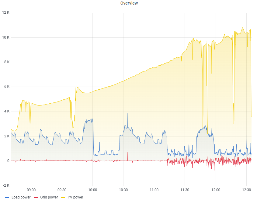 und da laufen einige Sachen und Kühlschränke, die verursachen die größten Spikes. Ich hatte das ja mal testweise auf MI, da geht das +-300W hin und her, egal ob PV oder nicht. Man konnte aber auch Zeitbereiche sehen, wo es alles super lief, aber die waren eine Seltenheit.