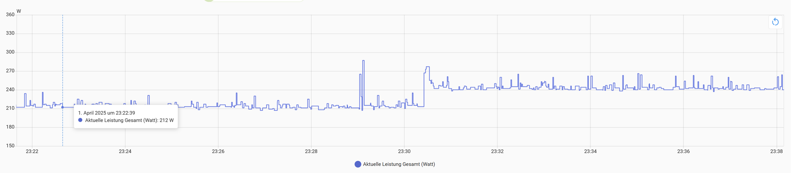 Zeitpunkt unter 1.000 Watt gefallen und er muss schlagartig mehr Leistung