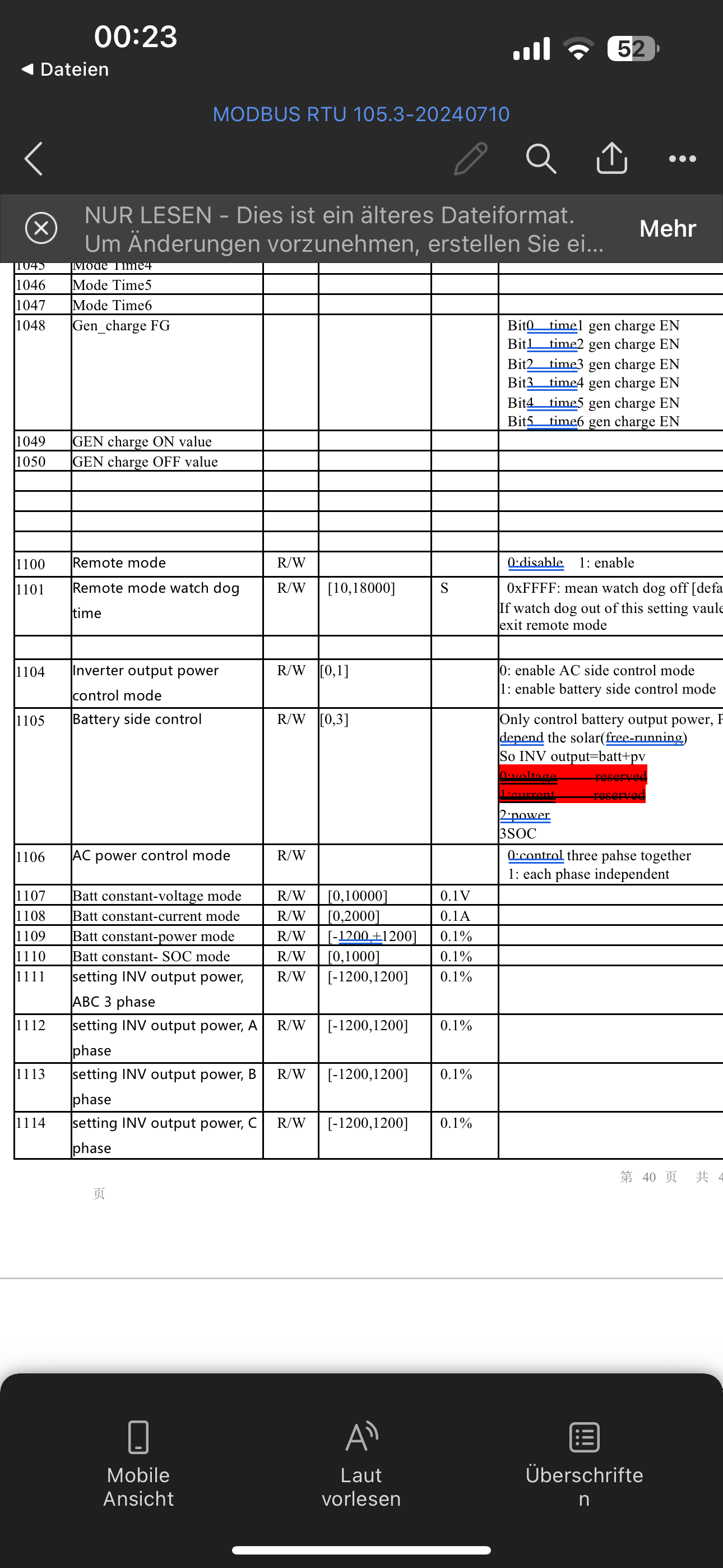 Alle die so ein komisches Verhalten haben und noch keinen Werksreset gemacht haben, sollten dies mal tun, alles andere ist vertane Zeit. Habe zwar nur die 1135 drauf, aber da hat es schon funktioniert und wird es sicher auch bei den neueren Versionen tun. entweder ihr habt was verstellt oder durch den FW update passen Werte aus dem Speicher nicht mehr, also Werksreset notwendig. Blöd das Deye da so ein Geheimnis draus macht, was es an Änderungen gibt.