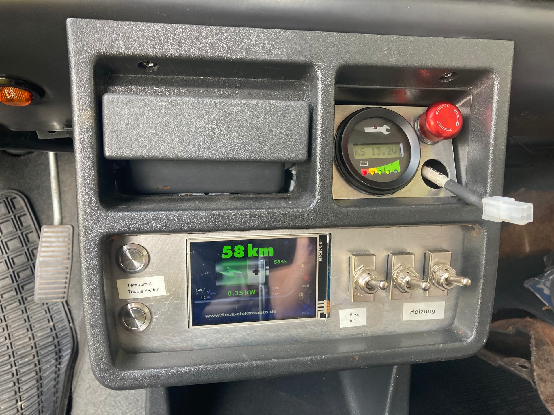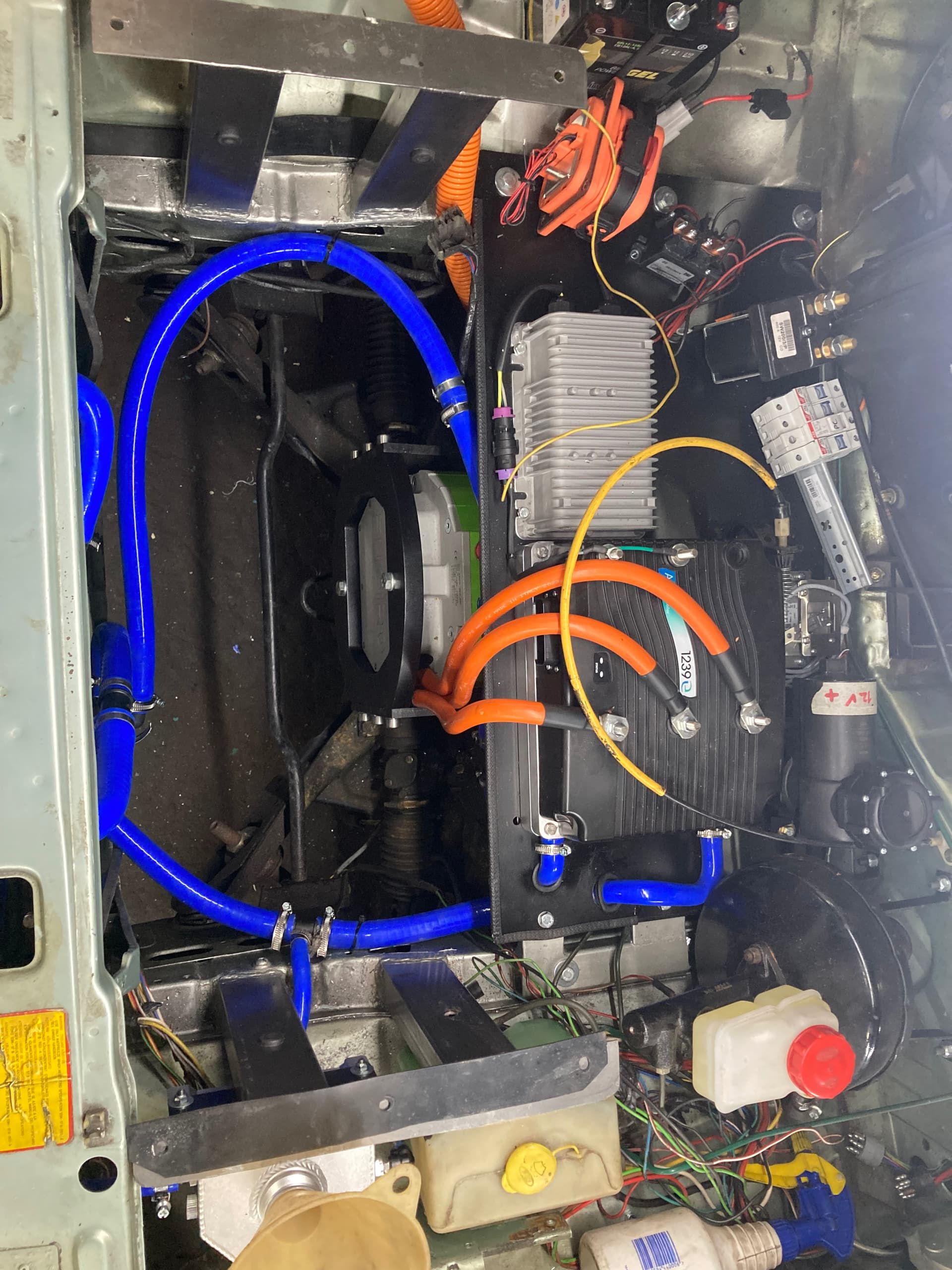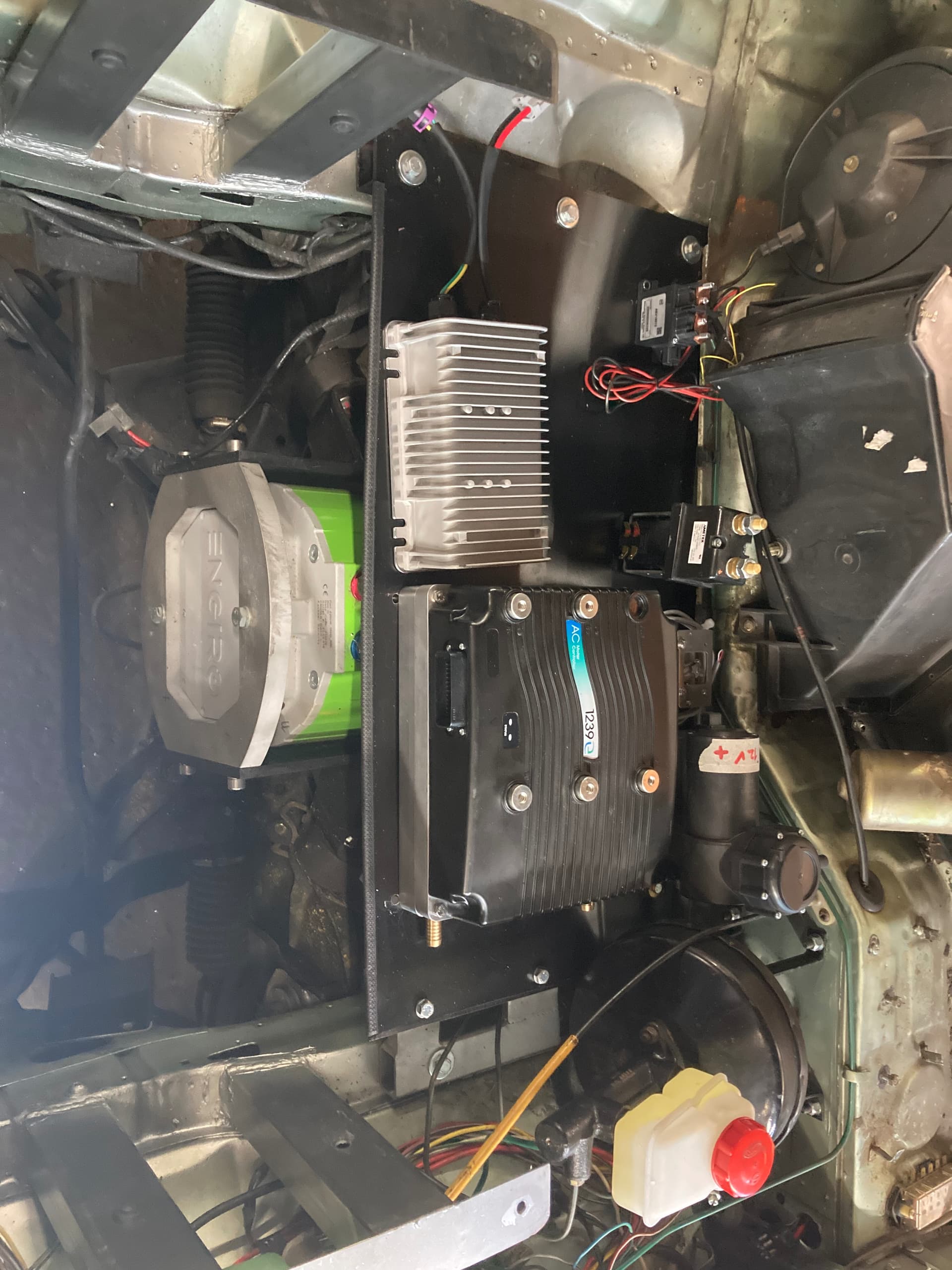 Letztes Jahr wurden die Karosseriearbeiten gemacht (Akkukiste hinten eingebaut, Akkukiste vorne eingebaut, neue Motorhalter eingebaut), dieses Jahr die Verkabelung und die Inbetriebnahme. Die hat deutlich länger gedauert als gedacht, auch, weil ich einmal durch einen blöden Unfall den Controller zerschossen habe. Da kam alles zusammen, aber es ist wirklich passiert.