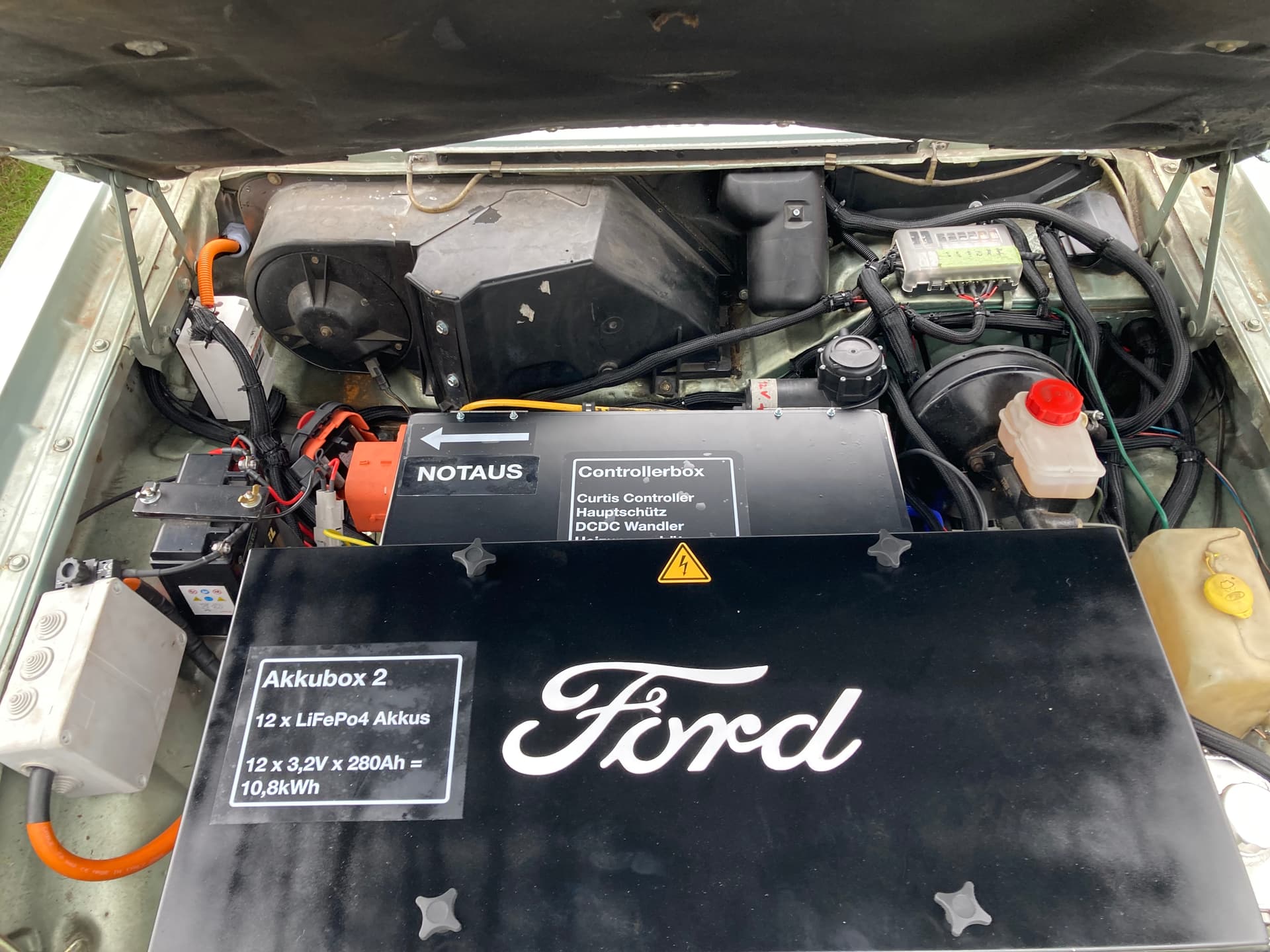 2007 hatte ich einen Ford Taunus 3, 1,6l Vierzylinder, Baujahr 1980, vom Sohn eines erstorbenen Rentners erworben, und auf eigener Achse aus Passau nach Dortmund überführt. Ein sehr schönes Auto, in gutem Zustand, dass ich aber nach und nach über die Jahre immer weiter erneuert habe. Schließlich ließ ich mir einen größeren Motor, einen 2,3l V6 einbauen, mit Fächerkrümmer usw., ein top Auto. Um 2020 rum, mittlerweile Familienvater und arg eingespannt vom Leben, hatte ich keine Zeit mehr für das Auto und habe es verkauft. Und wie das so ist im Leben, habe ich ihn natürlich bald vermisst…man will tatsächlich irgendwie immer das, was man nicht hat…aber wenn schon wieder Oldie, dann bitte als Elektro Umbau. Und so habe ich mit dem Käufer Kontakt aufgenommen, wir kamen zusammen, und ich hatte mein Auto wieder.