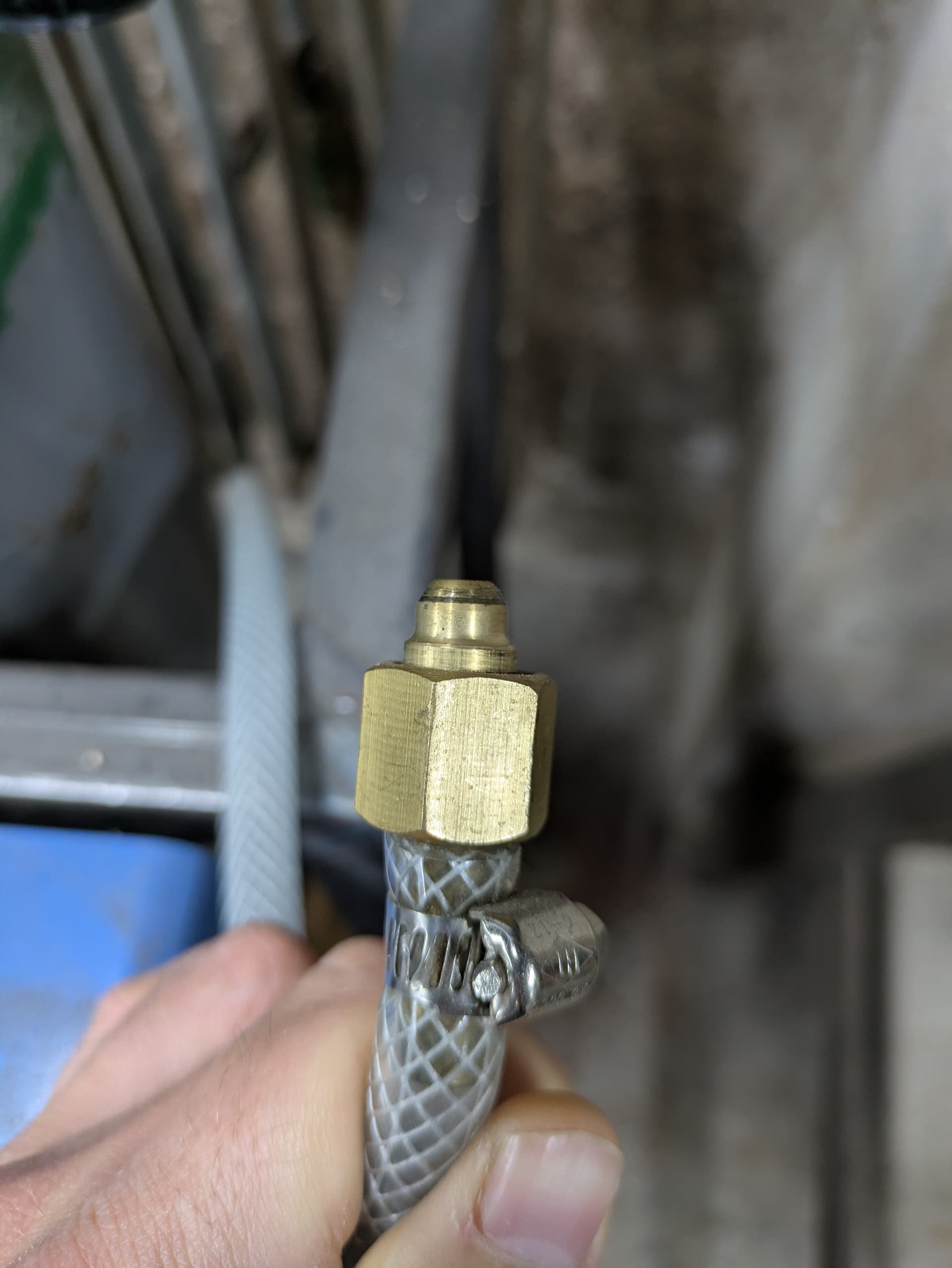 Um einen Drucktest mit Argon zu machen würde mir im Prinzip nur ein Adapter von was auch immer das auf dem Bild ist auf 1/4" SAE fehlen. Kennt jemand diesen Anschluss? Mit der Bildersuche war ich bisher nicht erfolgreich.
