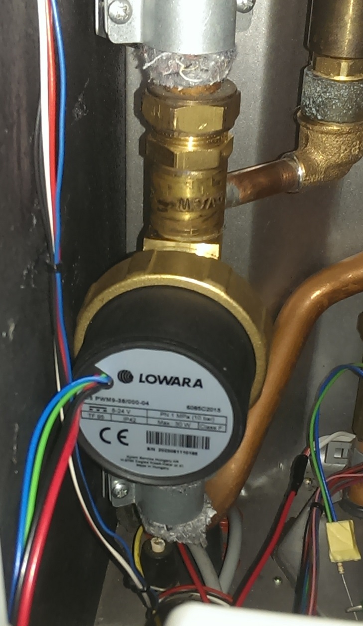 Dieser Tacho ist ein open Collector. Ich habe da 160Hz gemessen. Da könnte man noch was basteln wie wenn Frequenz unter 140Hz den Strom für den Solenoid des Brenners unterbrechen oder so. Ich habe keine Ahnung wie Vaillant einen Pumpendefekt feststellt und möchte das auch nicht testen.