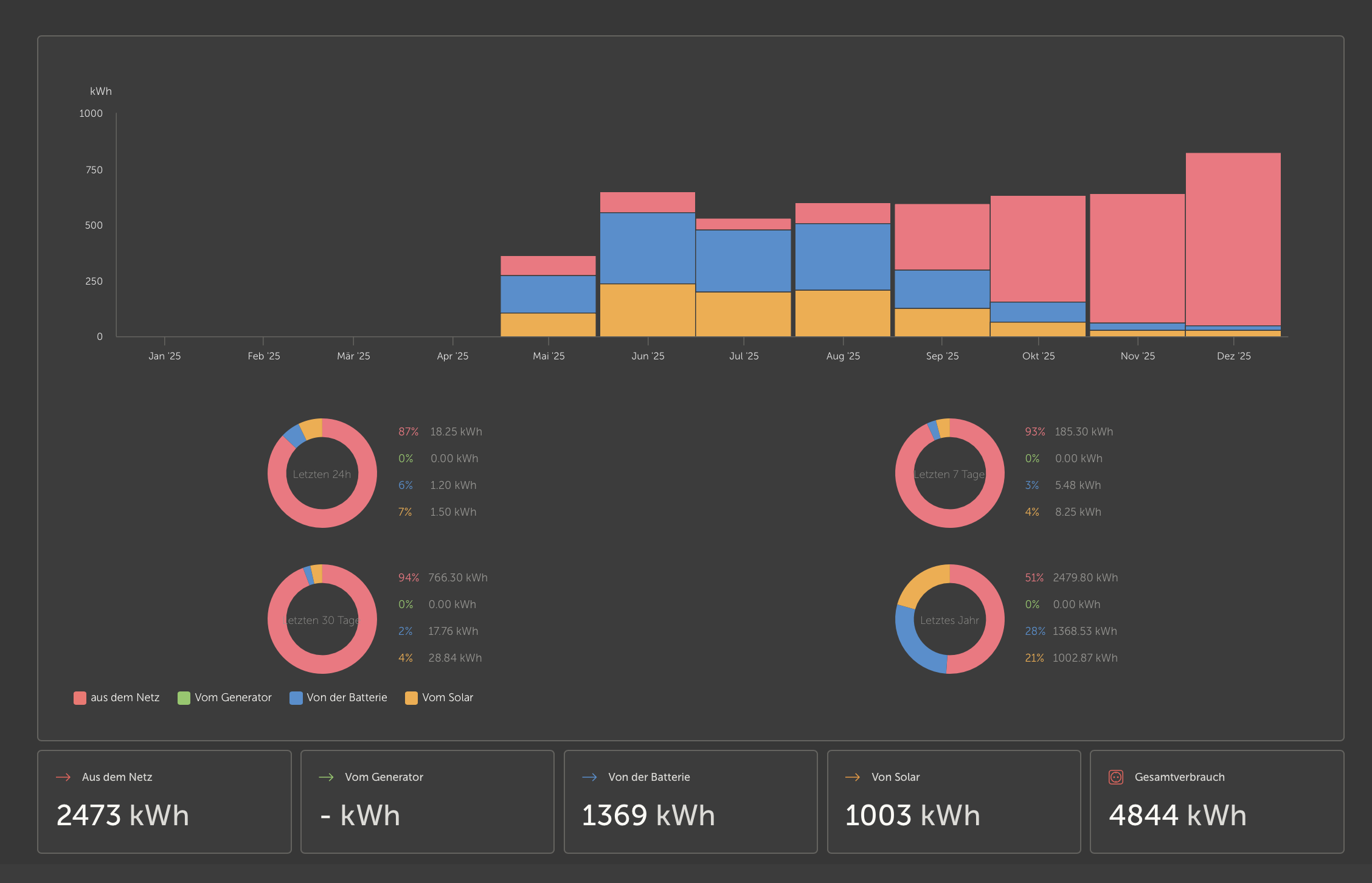 Momentaner Tagesertrag bei Sonnenschein ist ca. 2,5kWh