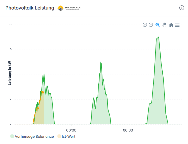 Bin echt überrascht wie gut die Prognosen jetzt im doch sehr wechselhaften Januar waren. Hier mal ein Screenshot von Anfang Februar aus meinem Energiemangementsystem: