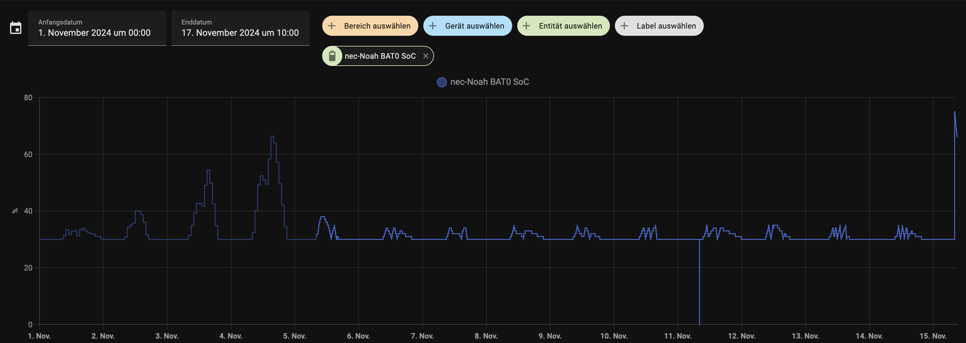 Ich würde gern die Noah mit ihrer unterschiedlichen soc Anzeige einzeln mal leerfahren um die Leistung zu messen, verschiebe das aber lieber in den Sommer da hier keine PV Leistung ankommt.