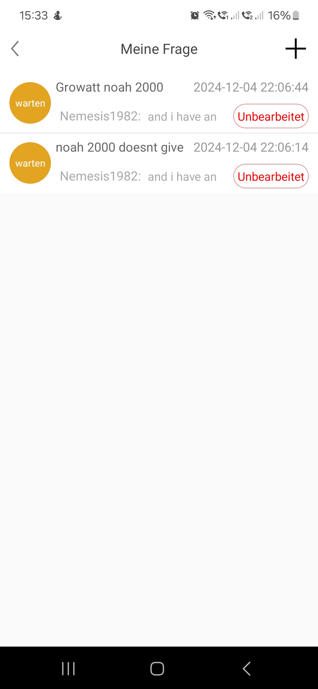 Mahlzeit, verstehe dann aber nicht warum bei mir dann so ein theater gemacht wird. Jetzt wollten die meine ganze installation mit allen werten wissen ( was die eigentlich nix angeht) und das ja eh nix mit dem fehler zu tun hat weil laden tut der noah ja nur er will halt nix einspeisen. Heute habe ich 2 mal die selbe antwort von der selben Person vom service zu unterschiedlich uhrzeiten bekommen. Grüße an alle