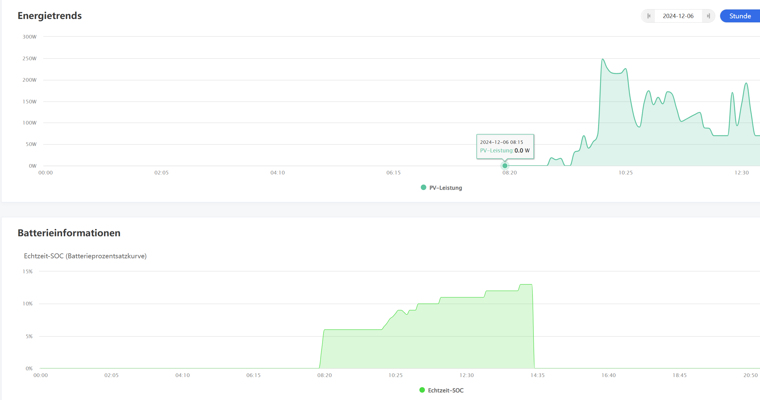 Ist schon mal jemandem von euch aufgefallen dass nun im Winter zeitweise der Speicher abends bei Sonnenuntergang einen SOC 100% hat obwohl das nie und nimmer sein kann und auch nicht zur angezeigten Tagesproduktion von 1,4Kw passen kann da ich dauerhaft 100W ins Hausnetz einspeise und hierdurch schon ca. 1Kw verbraucht wird.