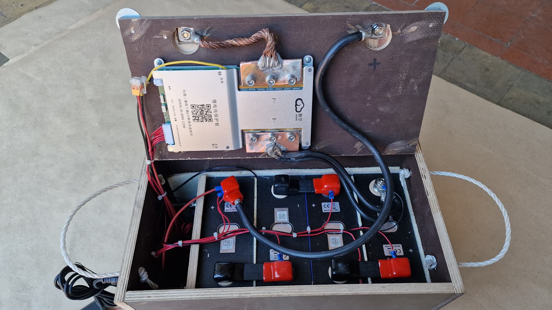 Bitte nicht als Kritik verstehen, ich würde die Kabel doch etwas "schöner" bzw. sicherer verlegen. Beim Fahren können die scheuern und so die Isolierung durchgehen => Kurzschluss. Plus liegt direkt auf Minus ohne jegliche Sicherung. Und BMS ist nach meinem Geschmack viel zu nah an den Polen dran, vor allem mit deinen Minus-Leistung nach BMS.