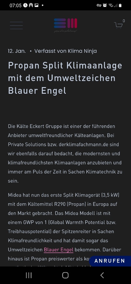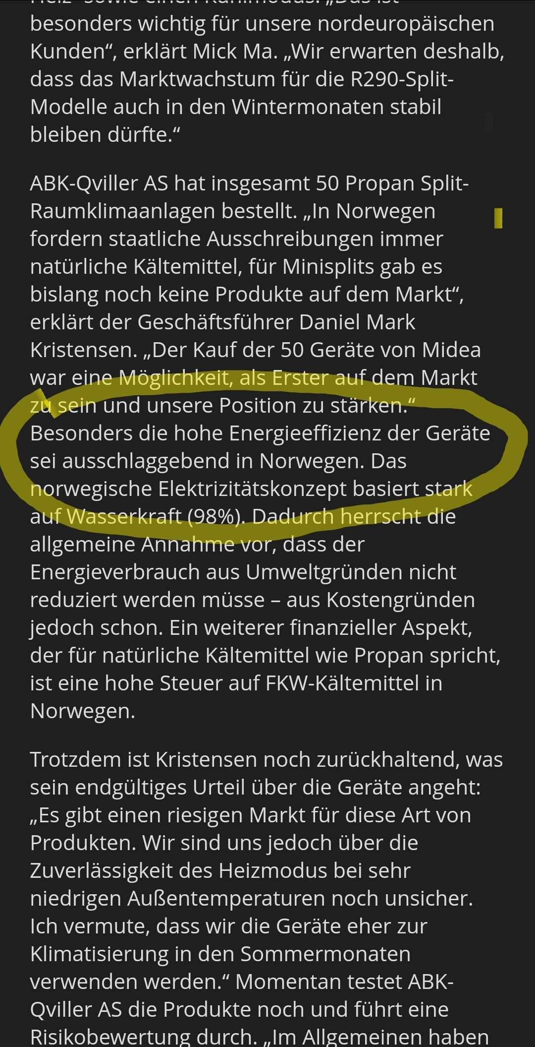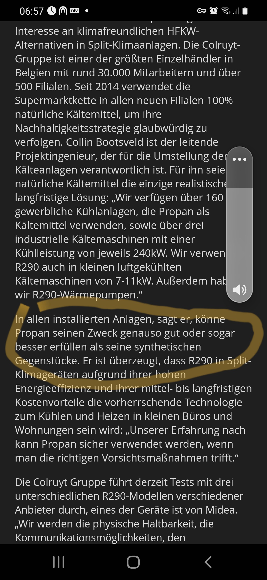 Das blöde ist daß es ja durchaus schon längst Minisplit Klimas mit R290 gibt, sind nur bei uns (EU) nicht zugelassen. Import kann man wegen der fehlenden CE auch vergessen.