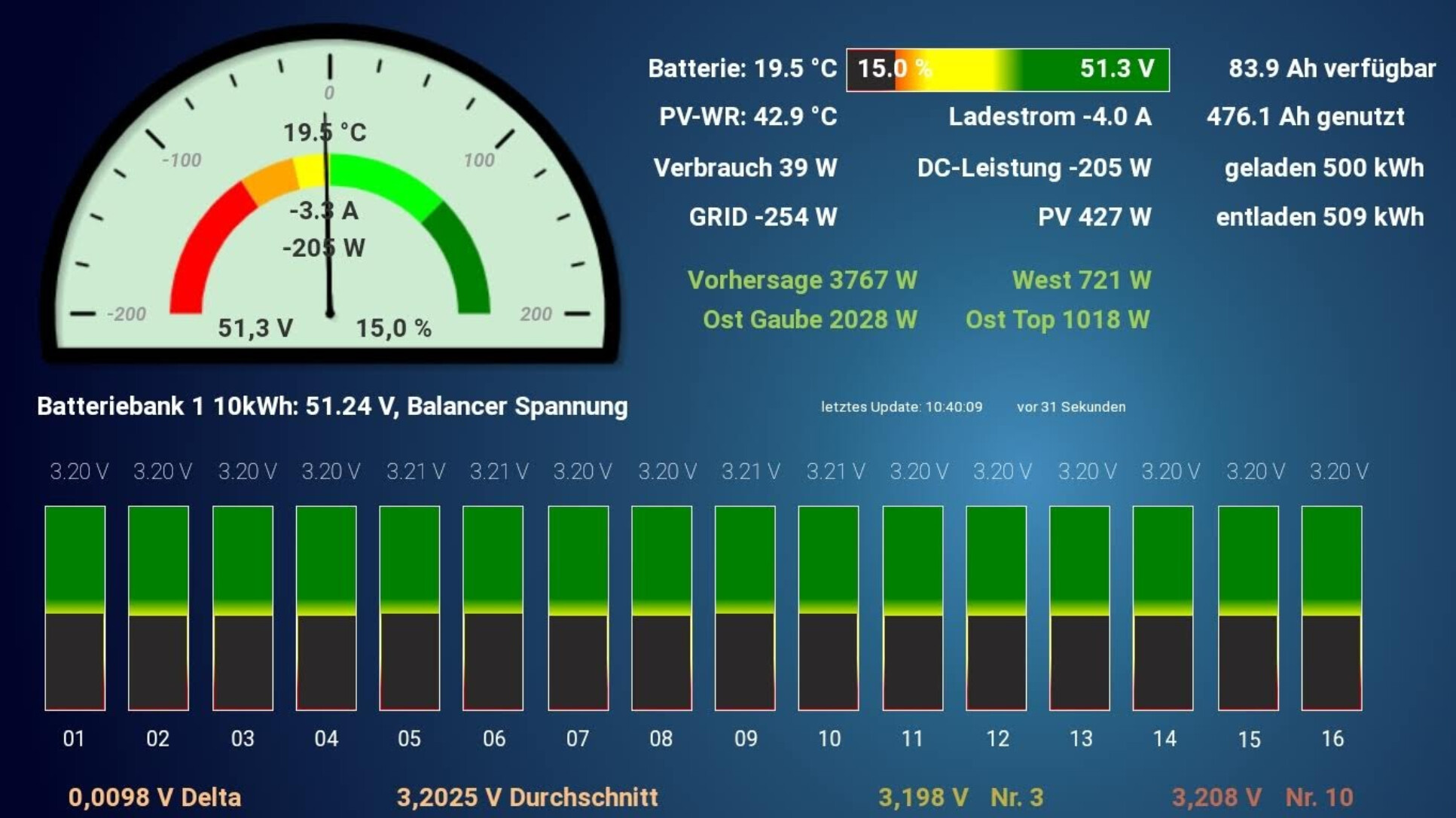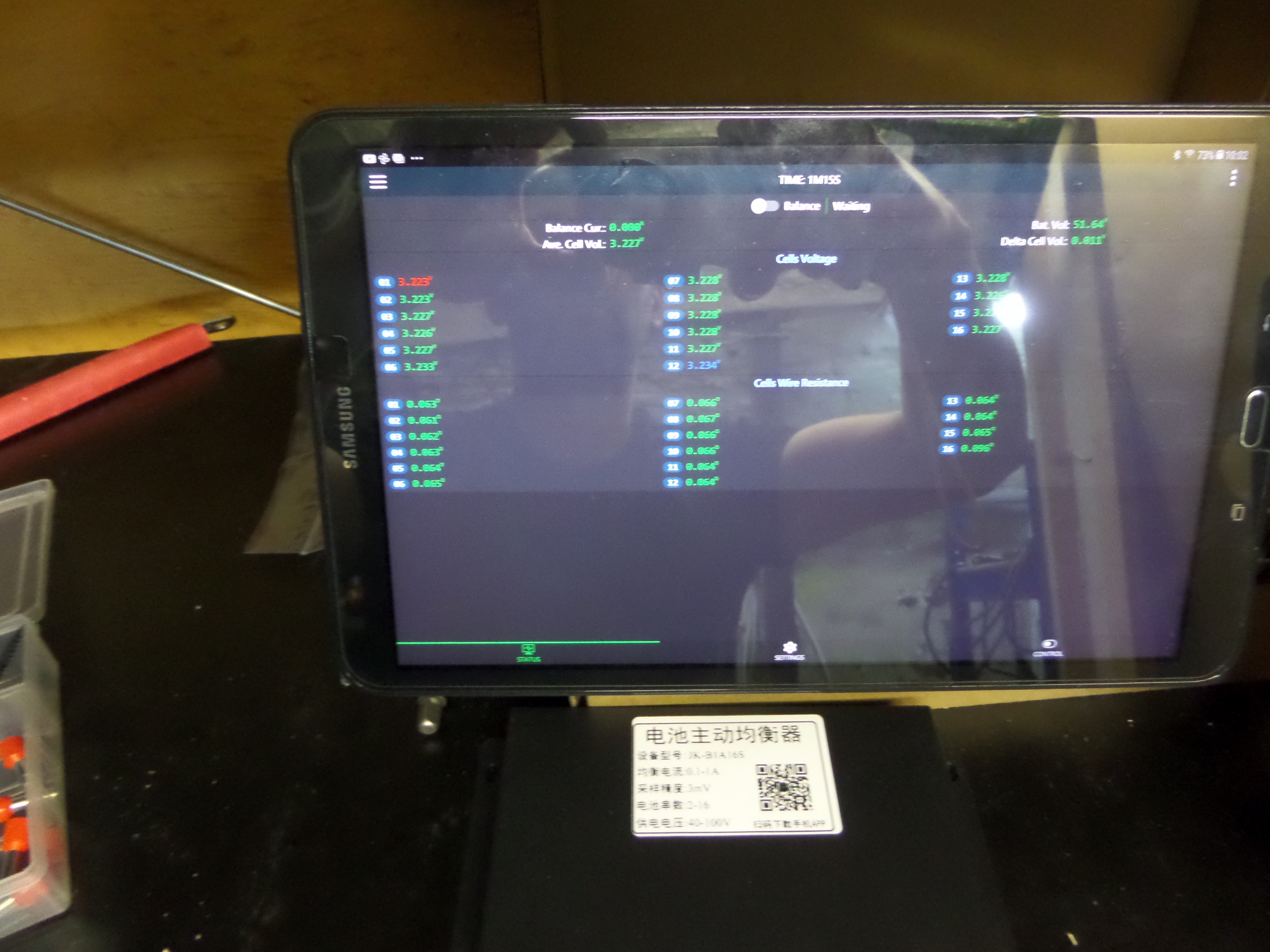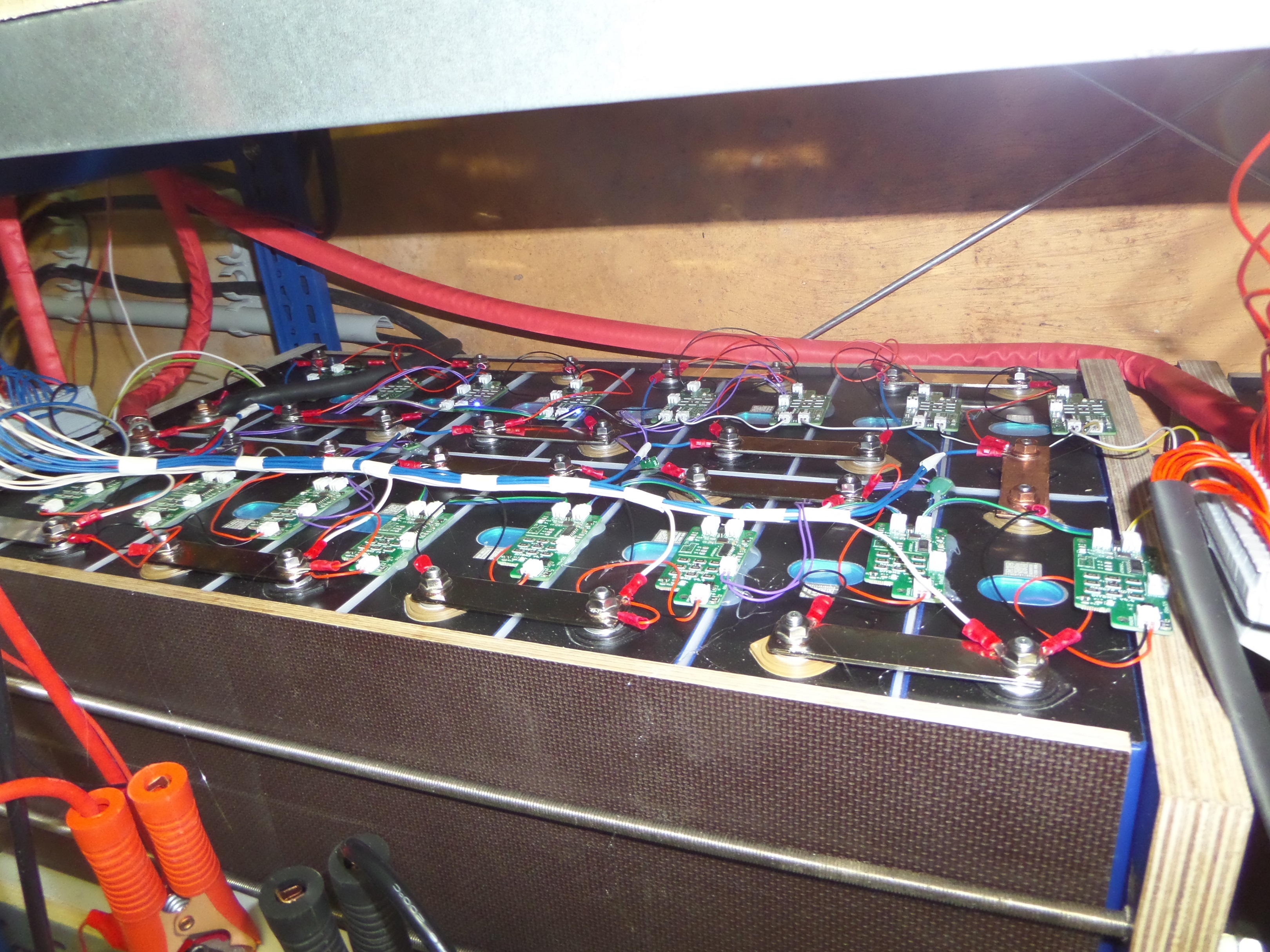 2x ActiveBalancer angeschlossen, erst mal nur zur Anzeige, leider funktioniert das Monitoring nur mit dem "alten" Active-Balancer (die Module mit neuerer Firmware lassen sich "noch" nicht abfragen), das Monitoring wird später mittels DIY-BMS nach Mr. Stewart erfolgen,
