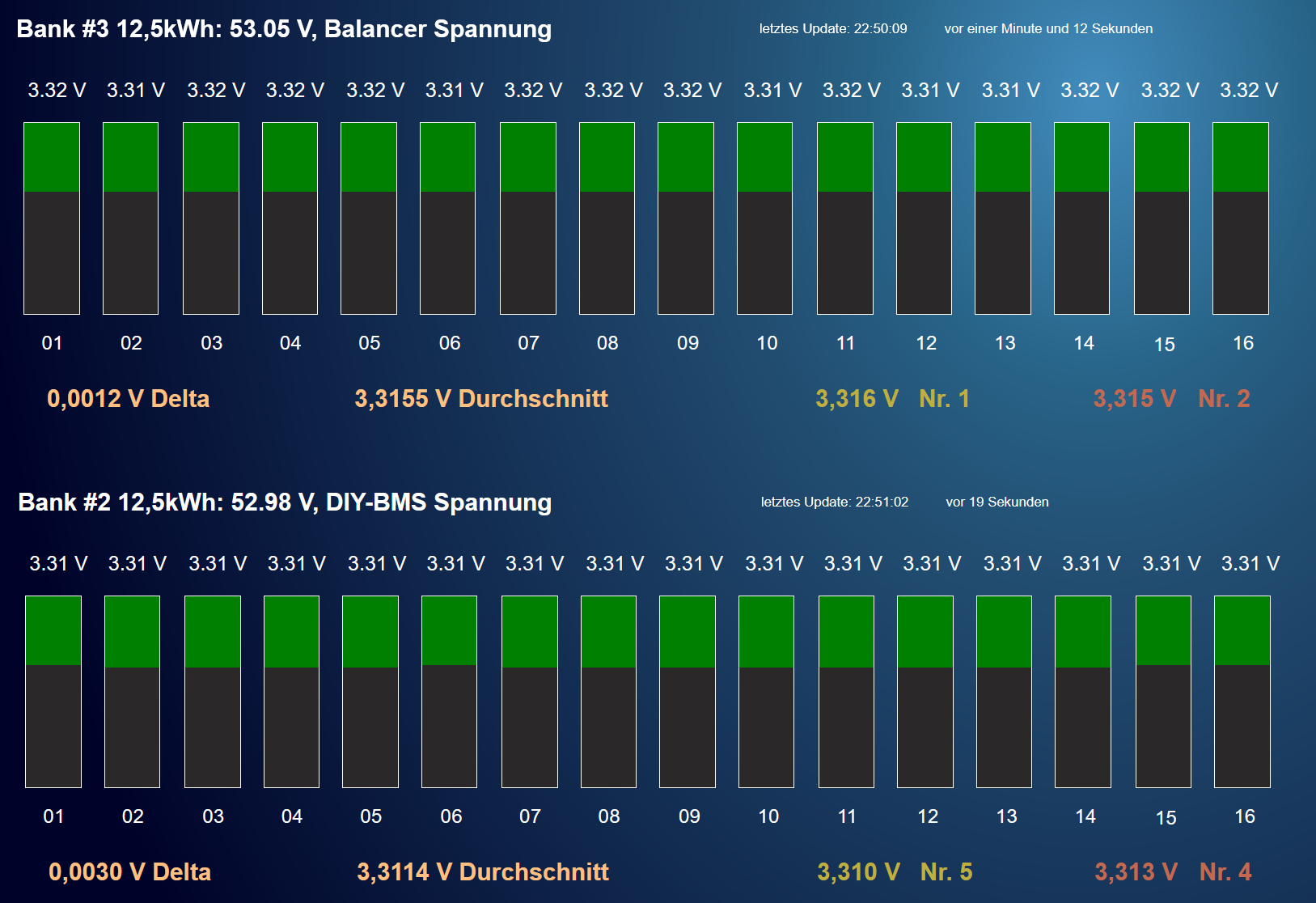 Morgens und dann am Abend, die Balancer werden erst Aktiviert wenn die Zellen über 80% laufen bzw eine Zellspannung von mindestens 3.4V erreichen, das wird später das BMS machen