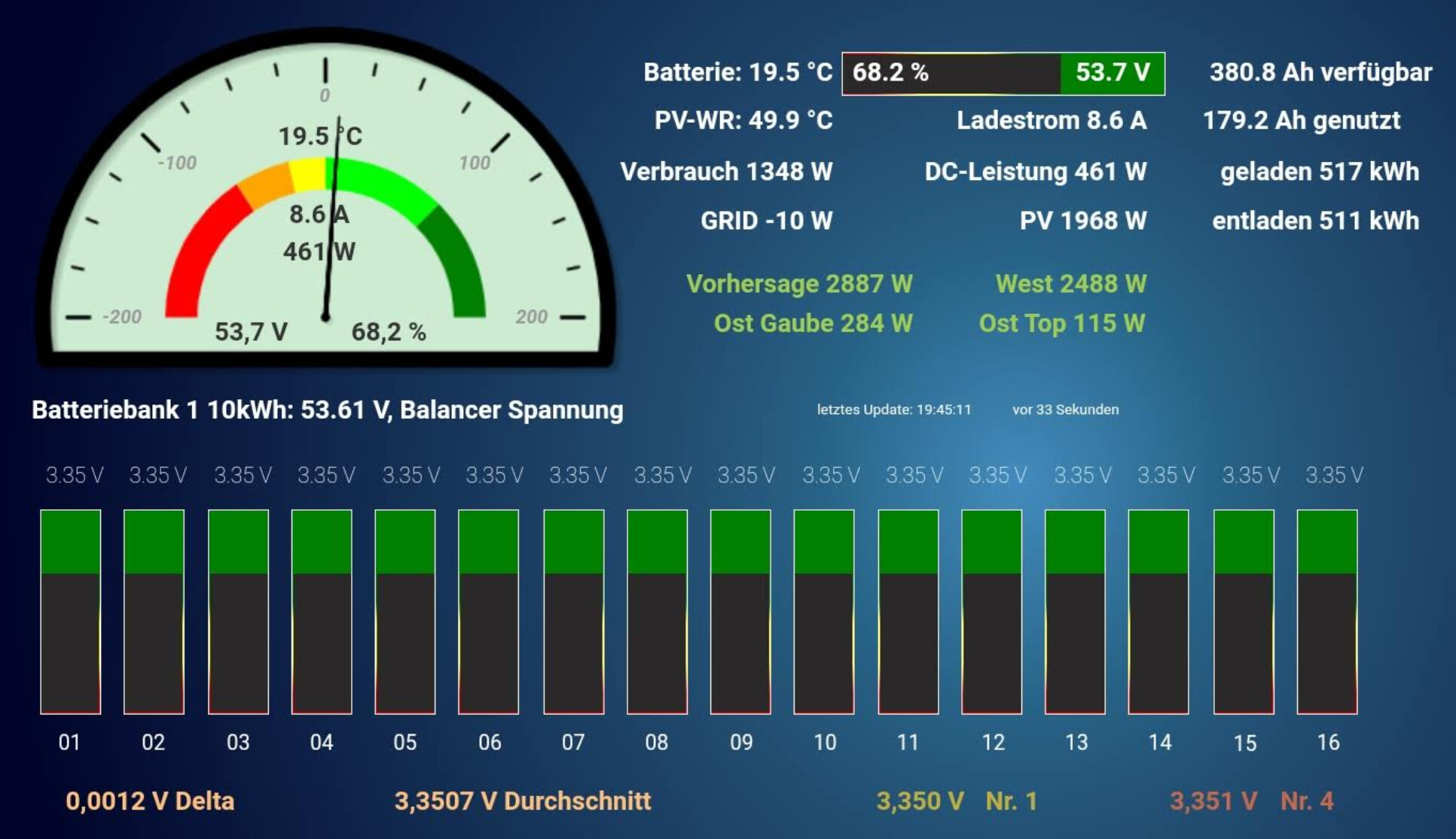 Die Daten werden ebenfalls zur Steuerung des Ladestroms ausgewertet und das Ergebniss dann mittels ModBUS an die MultiplusII übergeben.