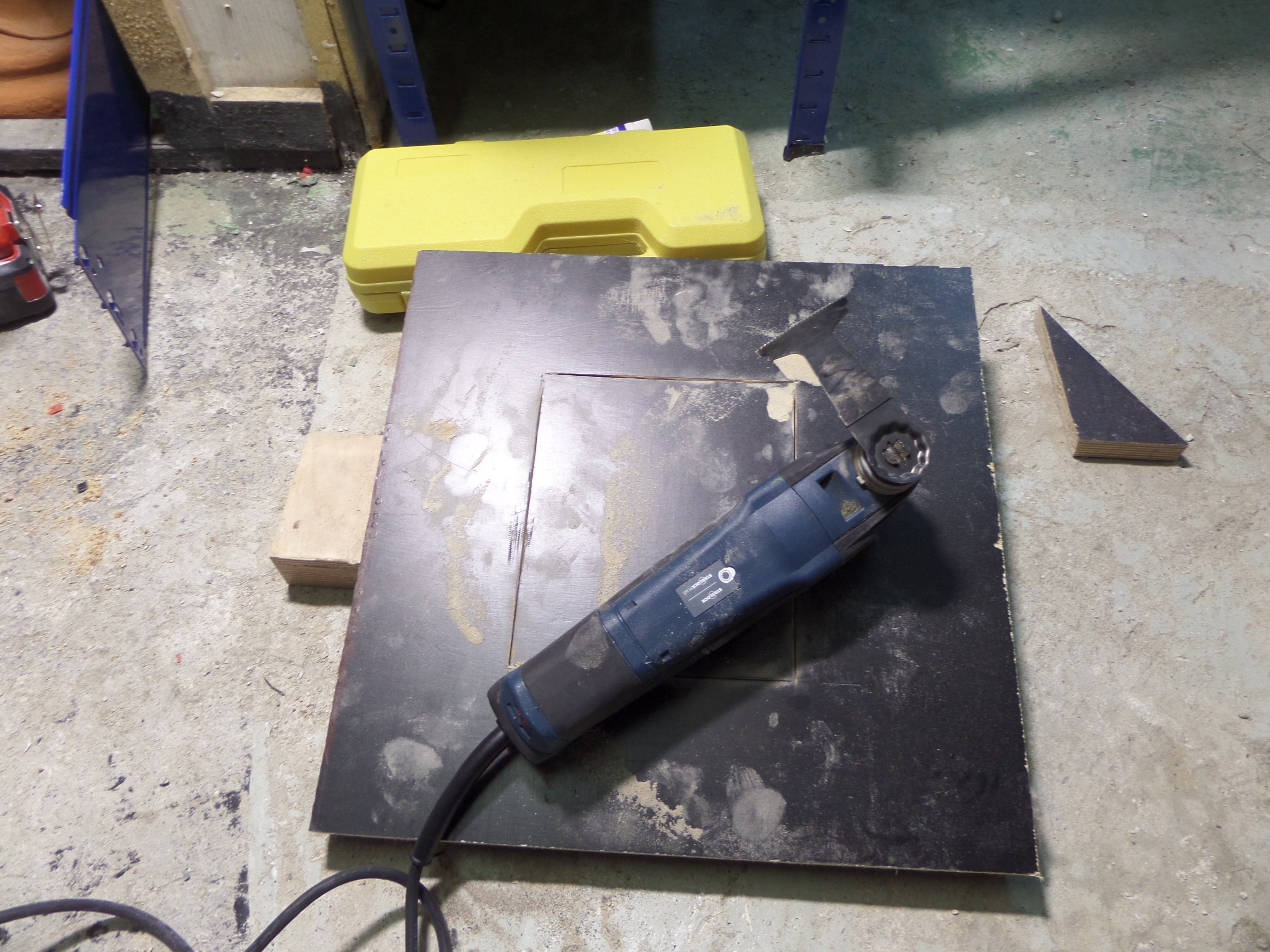 Kasten: "Press"wände 21mm Siebdruck, 8mm Gewindestange, 2mm Isoliertäfelchen, 9mm Siebdruck als Seitenwand