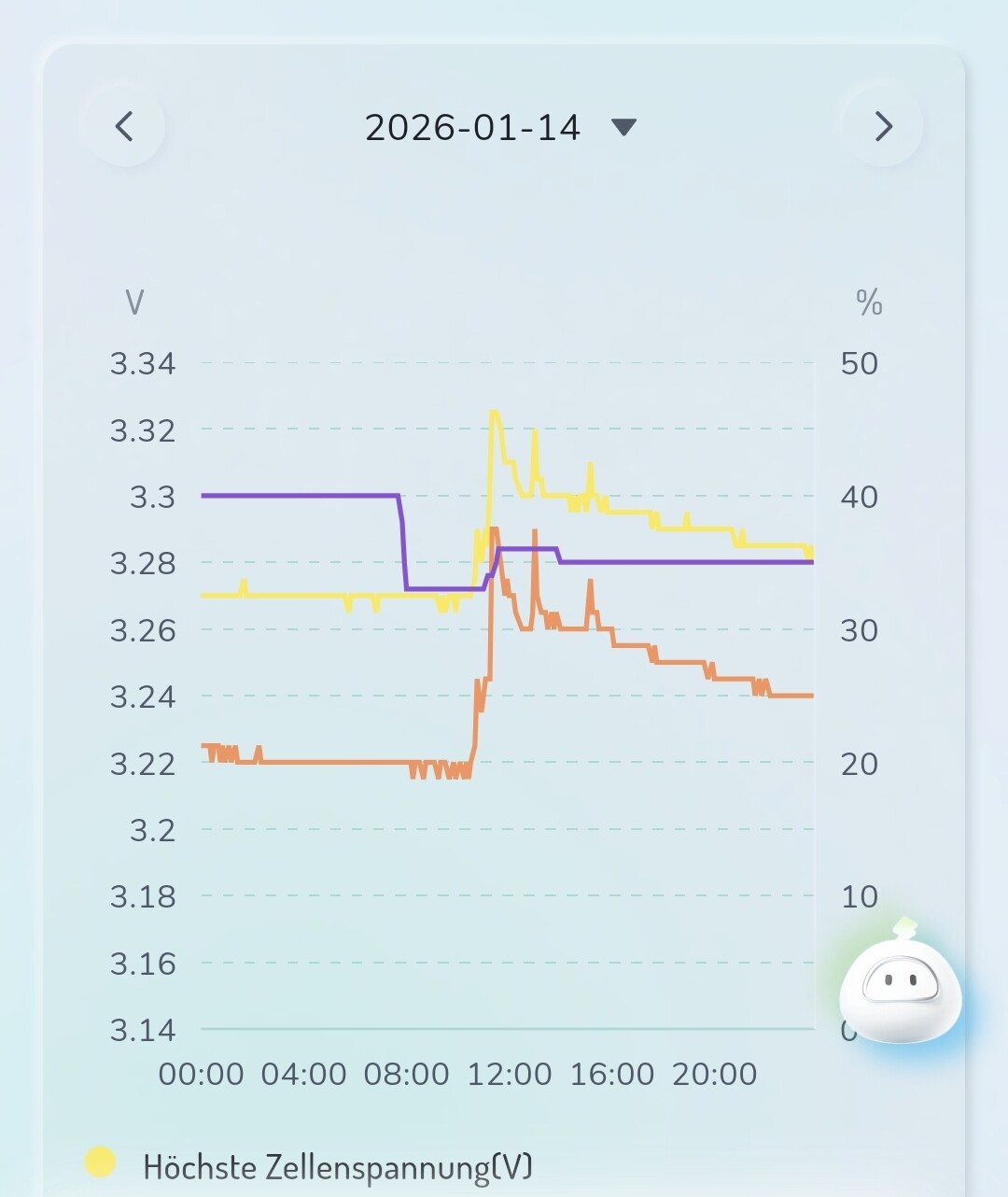 Aufgrund von SoC sprüngen (10-15% aktuell) möchte ich gerne den Speicher mehr in Realtime monitoren um zu schauen ob es bei einzelnen Zellen zu Spannungssprüngen kommt, welche die SoC-Sprünge erklären könnten.