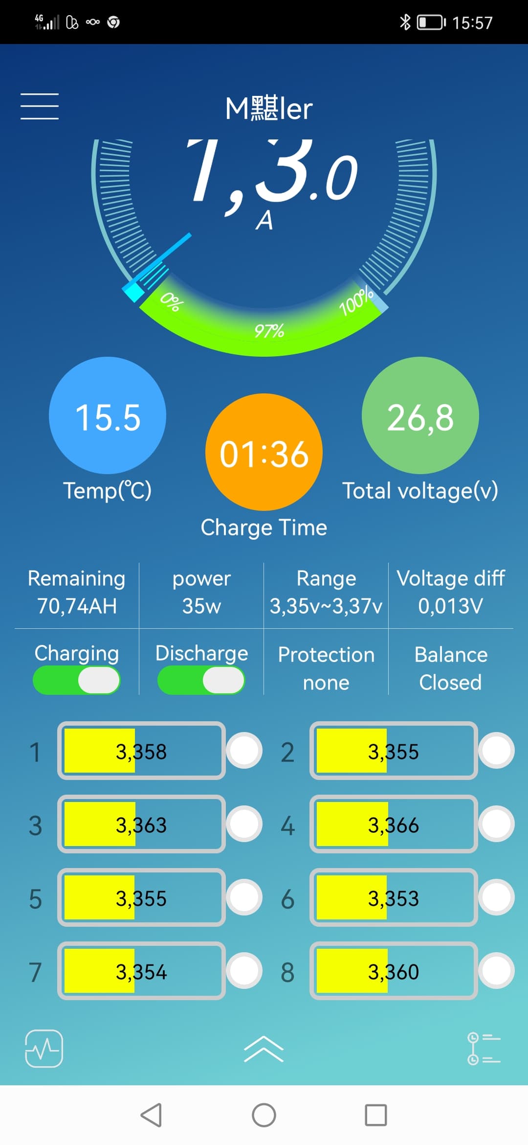Das Bild von 15.17 ist des pudels kern. Natürlich ist der Akku nicht voll, und die schon gleiche Zellspannung ist nur tarnung. Ab da weiterladen, bis die erste Zelle mindestens…. 3,42 V erreicht. Ab dann sieht man was los ist.