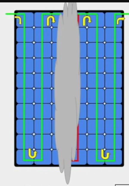 Das Verhalten ist bei Einzelpanels, auch parallel( nicht bei string da ist es anders) günstiger, wenn es bei Halbzellenpanels von der Schmalseite drüberläuft.