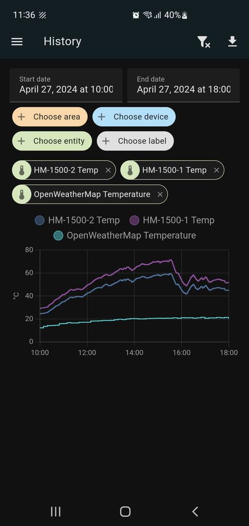 Nach den Kennlinien im Homeassistant ist die Maximale Temperatur des Wechselrichter an Tagen mit voll Sonne sehr genau 80° und die Leistung in Watt 2200 +/-.