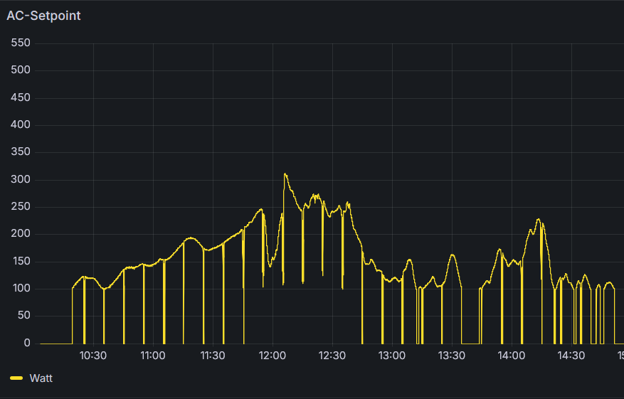 Allerdings finde ich, bleibt die Ansteuerung via MQTT (aus dem Iobroker heraus) ein Buch mit 7 Siegeln. Sobald man einmal manuell einen Sollwert in Watt in das Eingabefeld der Weboberfläche eingegeben hat ist das Netzteil nicht mehr per MQTT steuerbar. Da muss ich noch mal deutlich mehr in die Tiefe gehen um eine zufriedenstellende Ansteuerung via MQTT hinzubekommen.