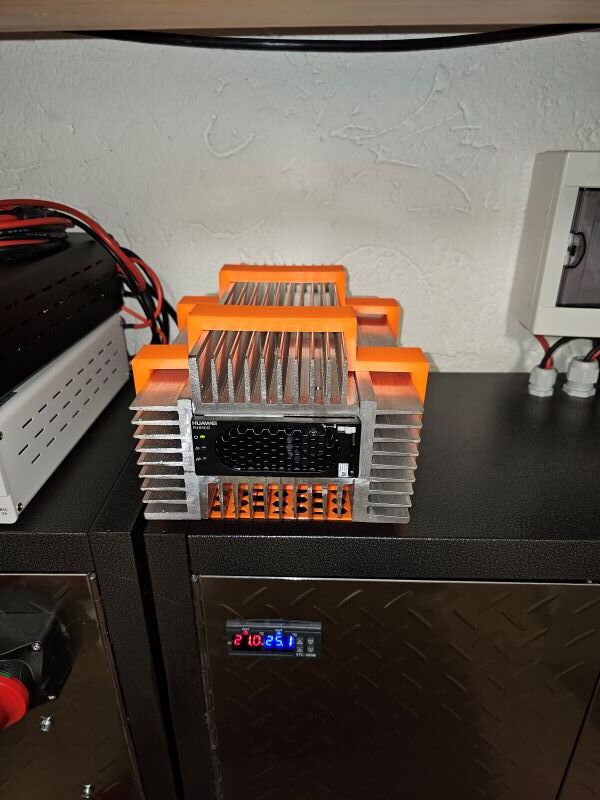 Ich habe eine DIY-Akkuzentrale mit Hochvolt-Stepdown-Regler (5V für Elektronik, 12V für Lüfter), ESP32, CAN-Bus-Interface für Huawei, RS485-Interface für Akku und MOSFET für Lüftersteuerung. Steuererung in ESPhome bzw. dann HomeAssistant. (dynamische Laderegelung aka. Nulleinspeisung bei AC-gekoppeltem Speicher)