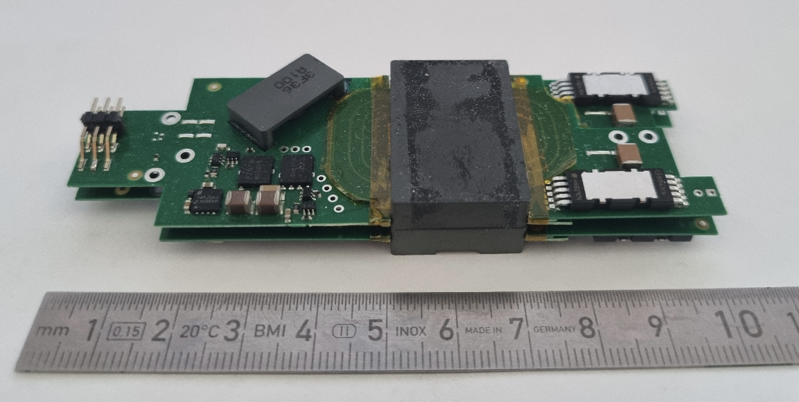 Die Technolgie ist Si-MOSFETs und SiC-Dioden bei ~ 500 kHz Schaltfrequenz ( resonantes /"softes" Schalten ).