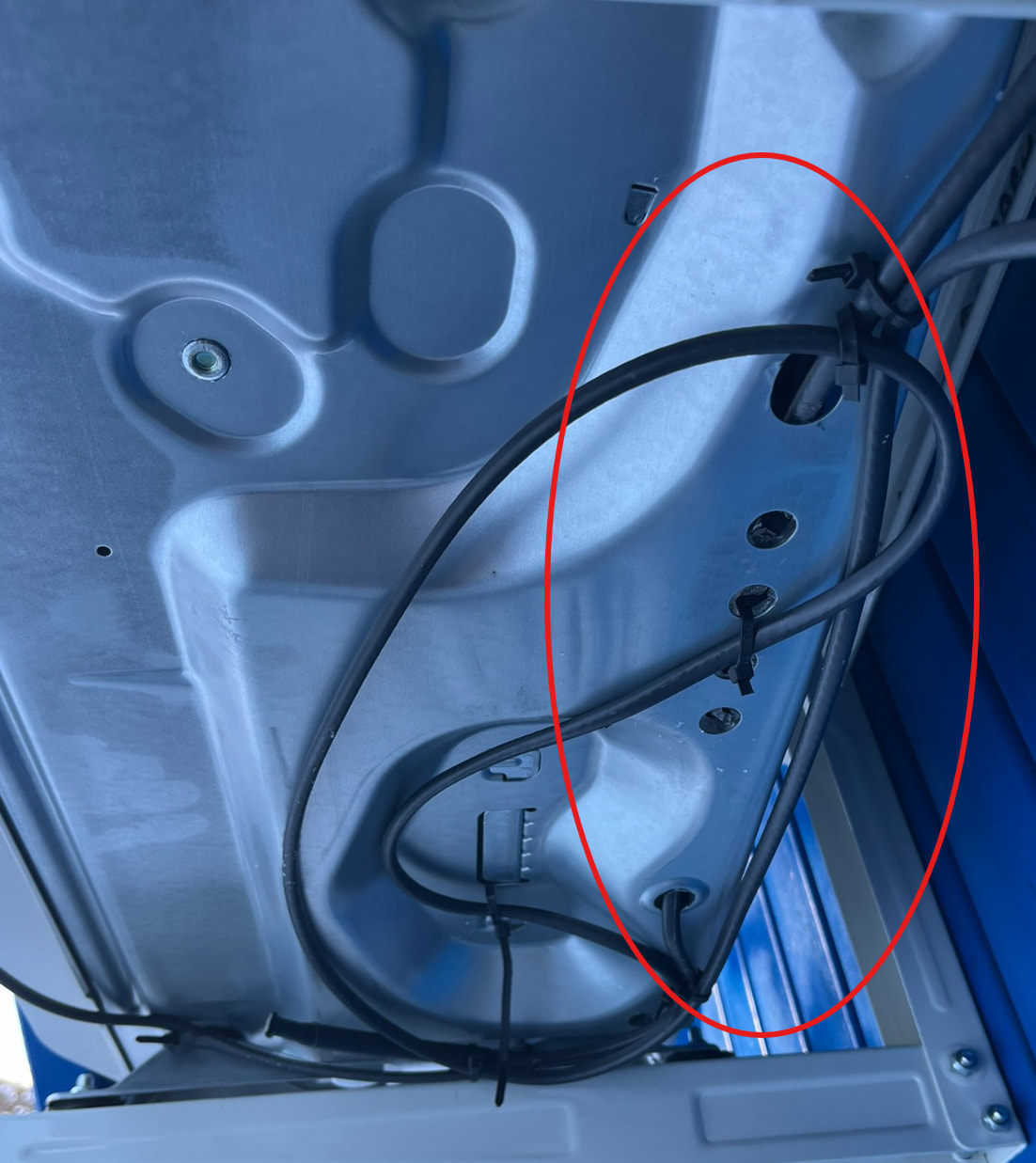 Nur habe ich das Kabel komplett ohne Öffnung vom Gerät einfach von unten reingesteckt und die andere Seite wieder rausgefummelt… War bei wenig Platz am Gerät nicht so angenehm, aber ging. Auf die Art ist eben wie im Bild bei dir auch das Heizkabel über den Löchern.