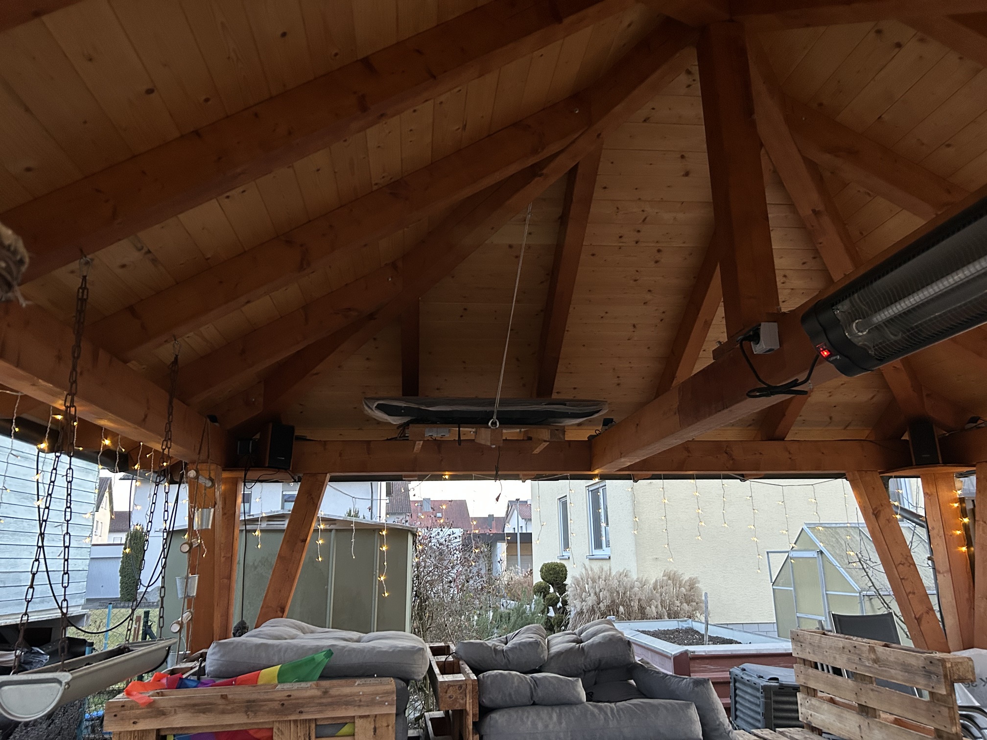 Mein Pavillion hat 5x5m. Meist sitzen oder liegen wir auf der Lounge. Die Pfettenhöhe beträgt ca. 2m, also ca 80-100cm Abstand zur Sitzhöhe. Wie viel Leistung sollte ich denn dabei anpeilen?