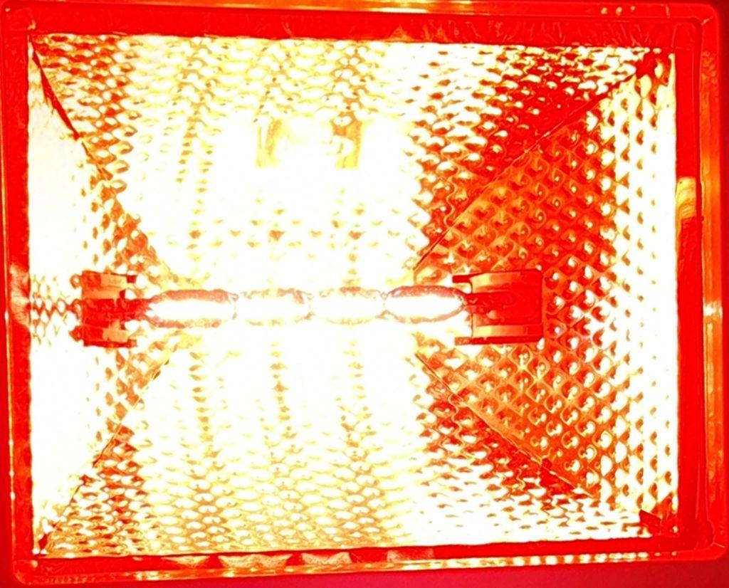In langlebigen Industrie Wärmestrecken sind Strahler ähnlich den Backrohr Schlangen auf Keramik Reflektor verbaut. Habe an der Stelle allerdings auch schon die roten 150 W Lampen E27 gesehen , nur die haben eine bescheidene Lebensdauer. Ein paar hundert Stunden bei Nennleistung. Die wollte ich mal über Bewegungssensor im langen Vorhaus einsetzen.
