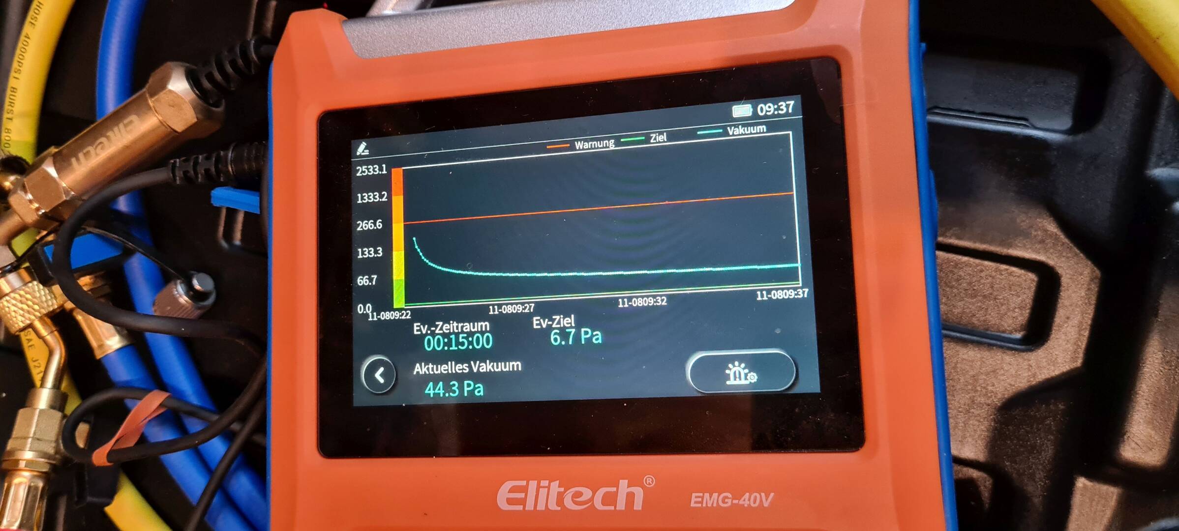 Die Monteureinheiten haben keinen Absolutwertsensor (Pirani-Vakuummeter). Für genaue Vakuummessung brauchst du sowas wie das testo552, also ein spezielles digitales Vakuummeter.