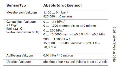 In den Datenblättern steht dann etwas speziell zum Messbereich im Vakuumbereich.